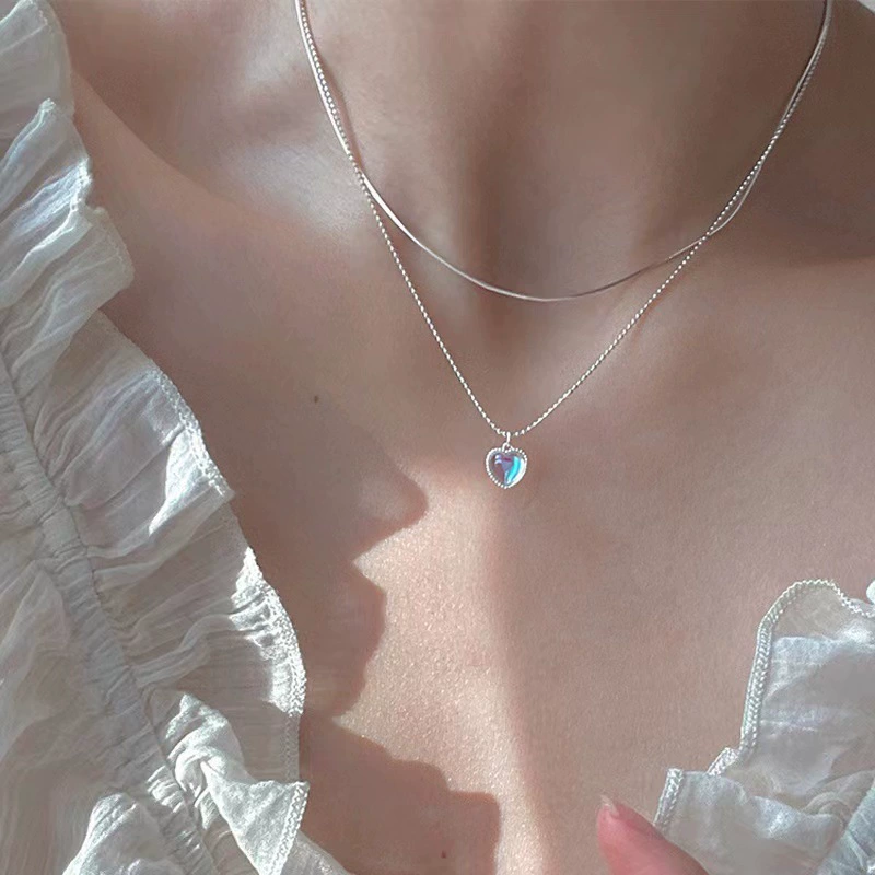 | nameOriginal | Colorful stacked double-layer moonstone necklace heart-shaped pendant |