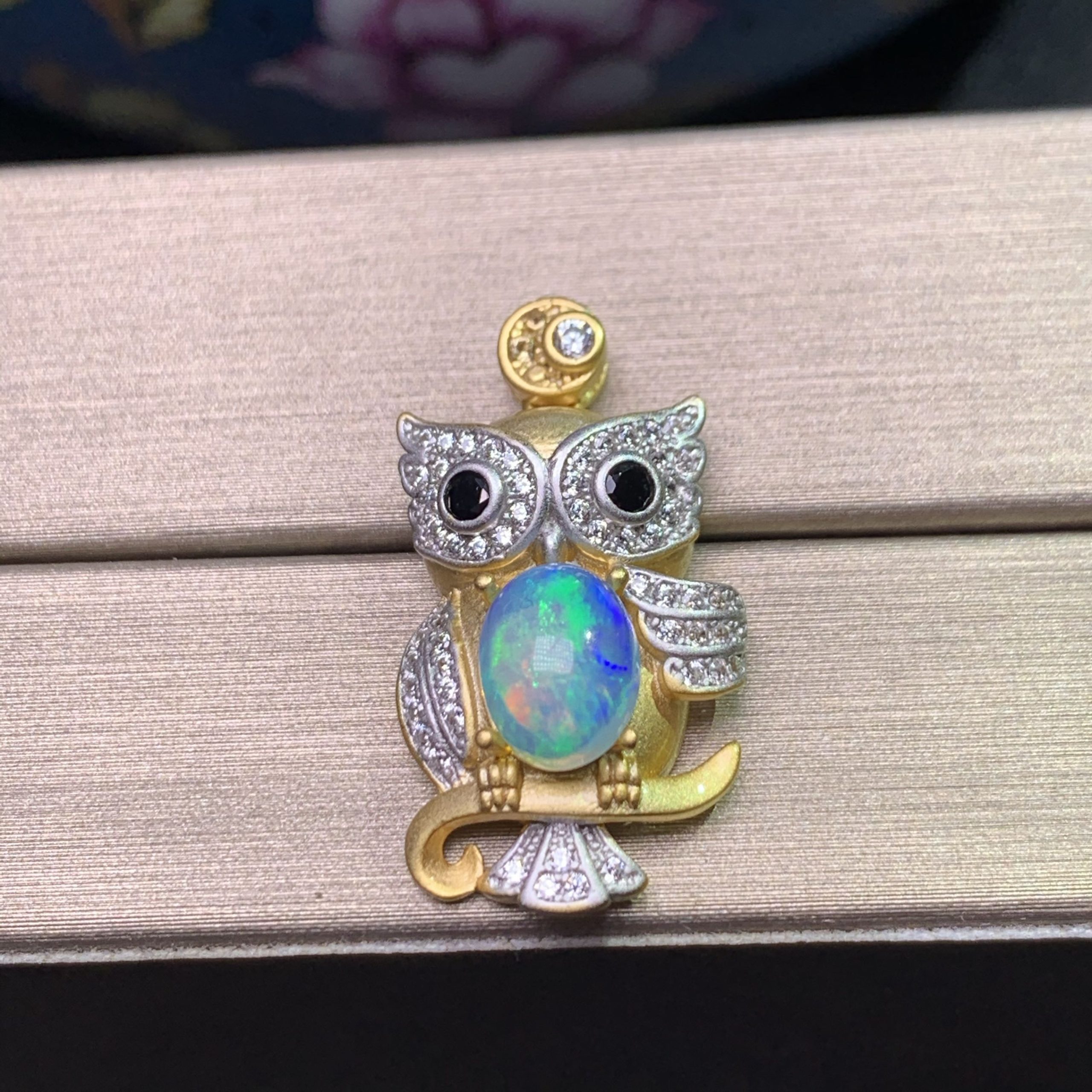 | nameOriginal | Colorful starry sky opal pendant 925 silver gold-plated ancient craftsmanship cute retro Athena owl pendant |
