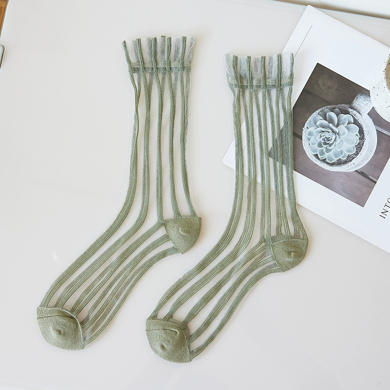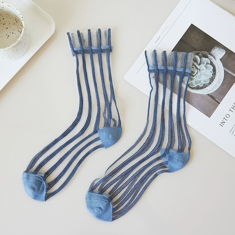 | nameOriginal | Colorful vertical striped glass stockings mid-calf women's summer thin style personalized Korean ins trendy silk crystal stockings internet celebrity |