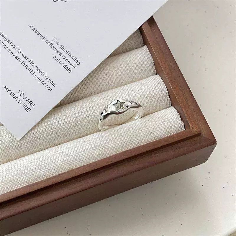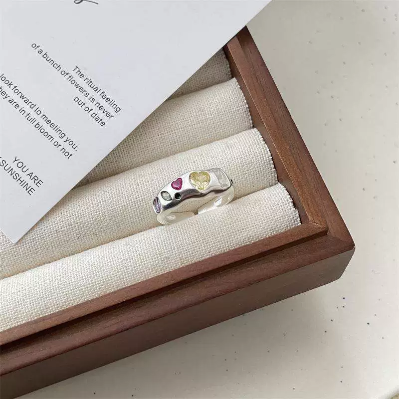 Colored vermiculite ring women light luxury love fashion S925 silver opening rings ins niche index finger ring tide
