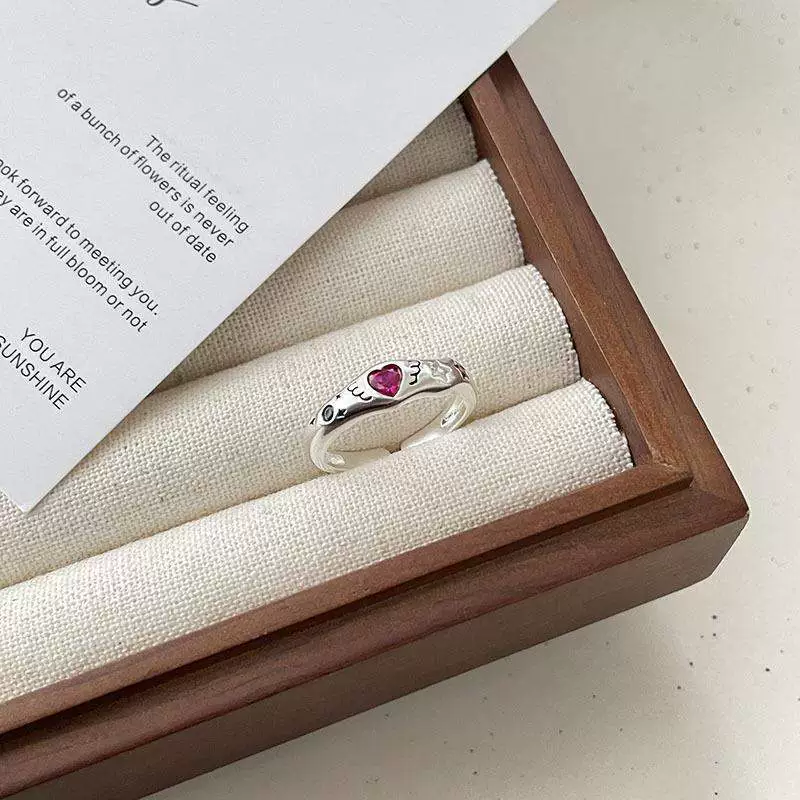 Colorful zircon ring for women light luxury love fashion S925 silver open ring ins niche index finger ring trend