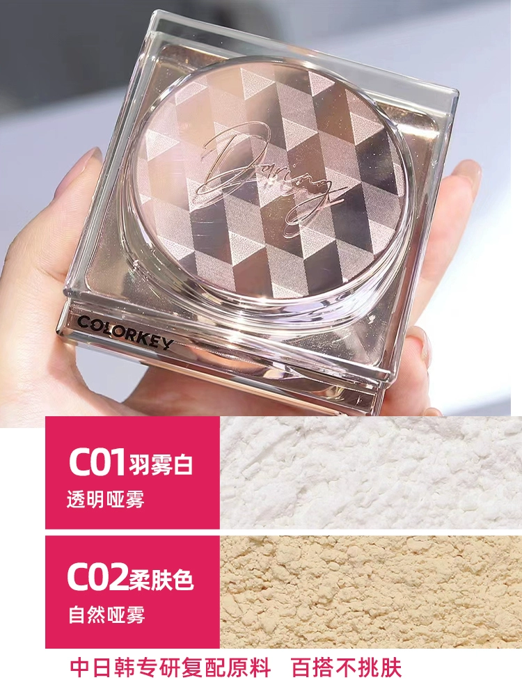 | nameOriginal | colorkey colachi small fog mirror makeup loose powder oil control non-removing makeup powder waterproof and sweat-proof pink s02 |