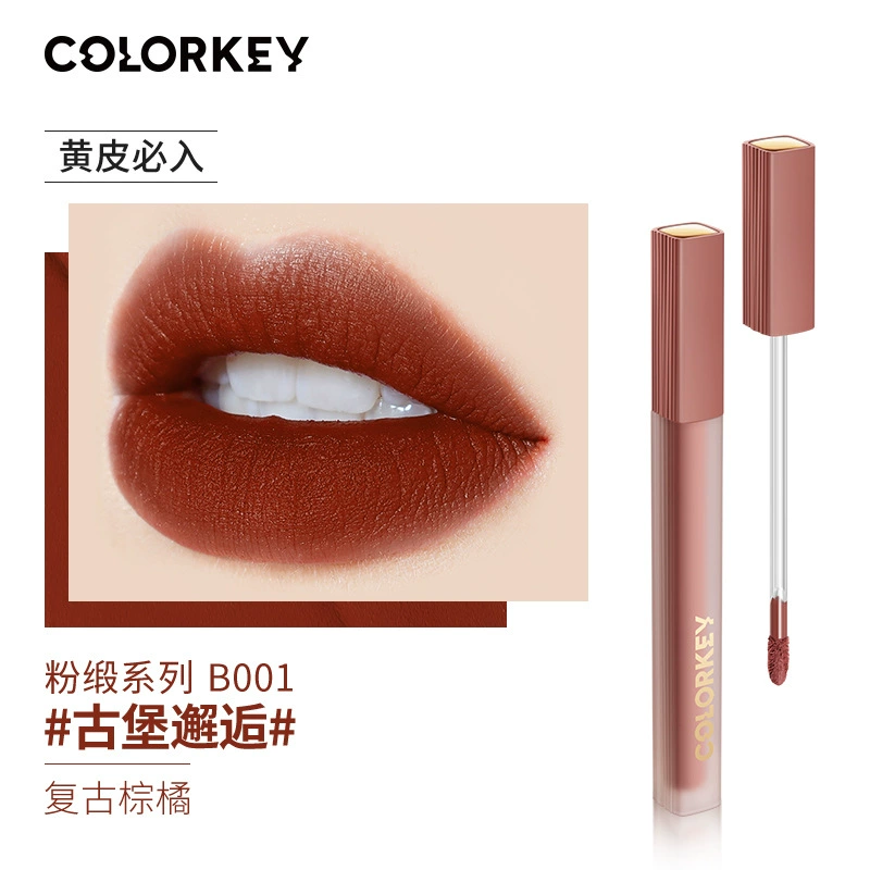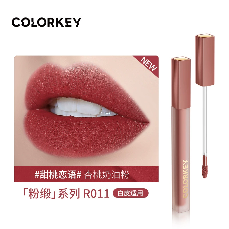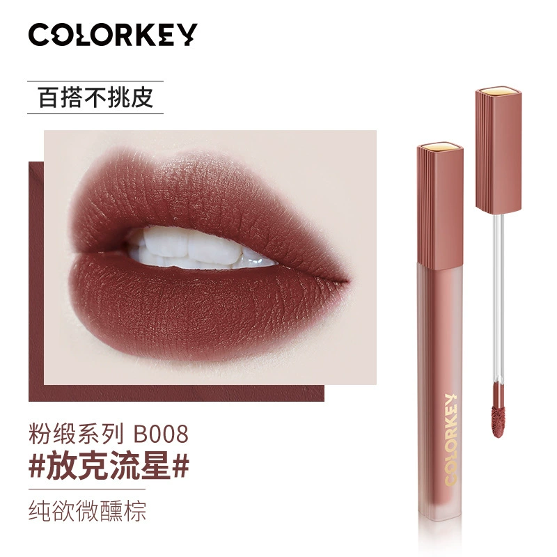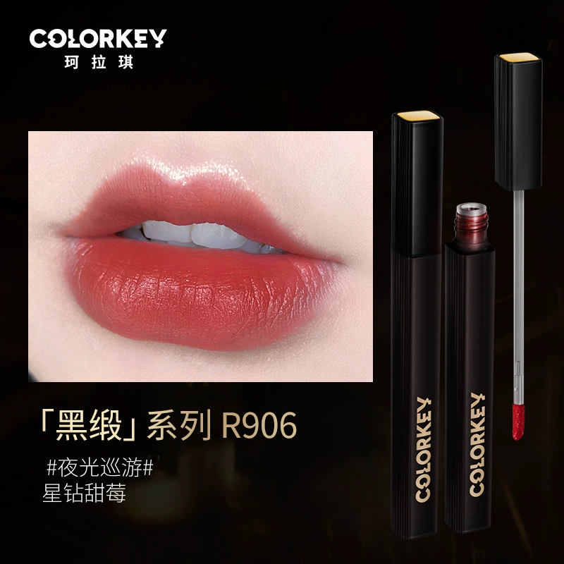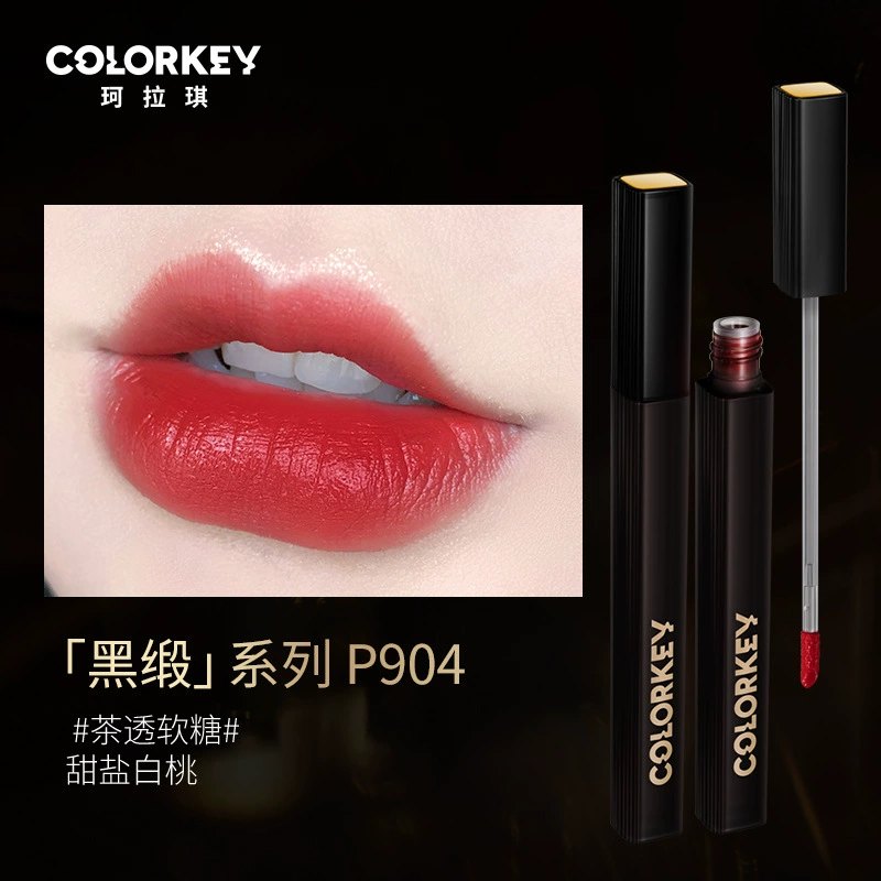 Colorkey Colaqui Black Satin Lip Glaze Pink Satin Lip Cream Lip Gloss Women's Matte Lipstick Whitening Long-lasting Not Easy to Stick to the Cup