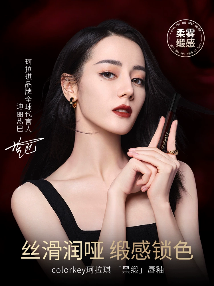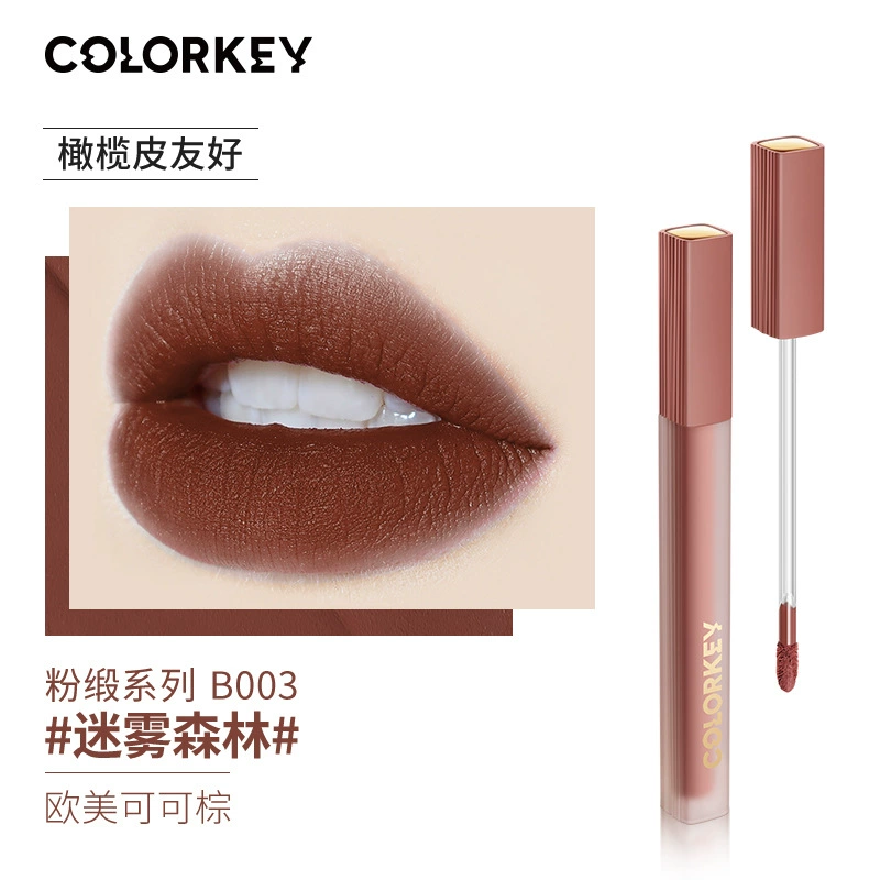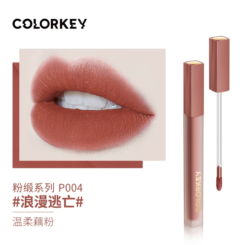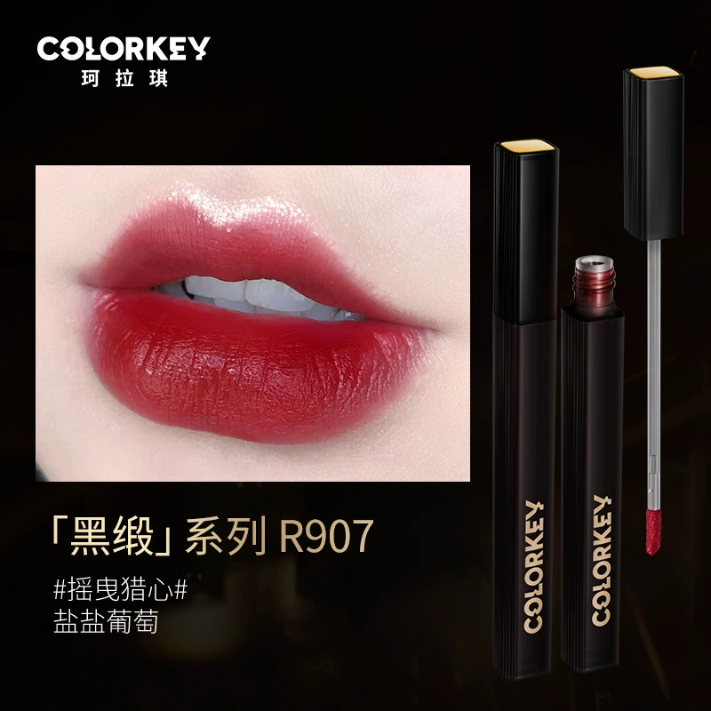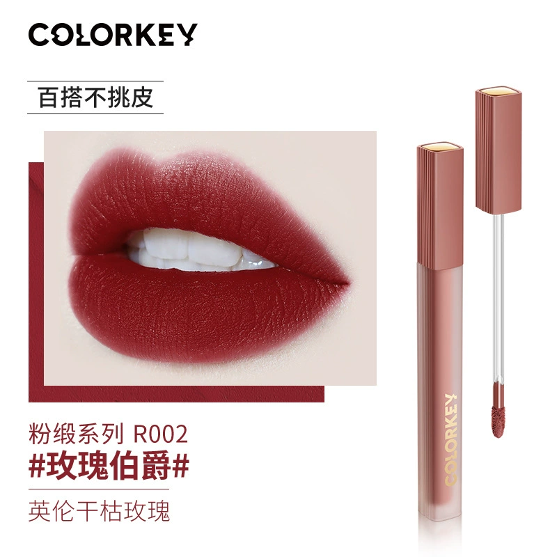 Colorkey Colaqui Black Satin Lip Glaze Pink Satin Lip Cream Lip Gloss Women's Matte Lipstick Whitening Long-lasting Not Easy to Stick to the Cup