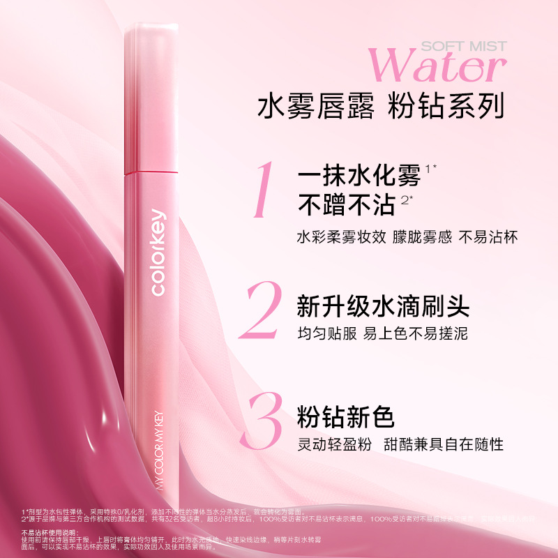 | nameOriginal | COLORKEY Kolaqi Water Mist Lip Dew Powder Diamond Series Mist Lip Glaze Lip Gloss Lipstick Not Easy to Stick Cup Authentic Product |