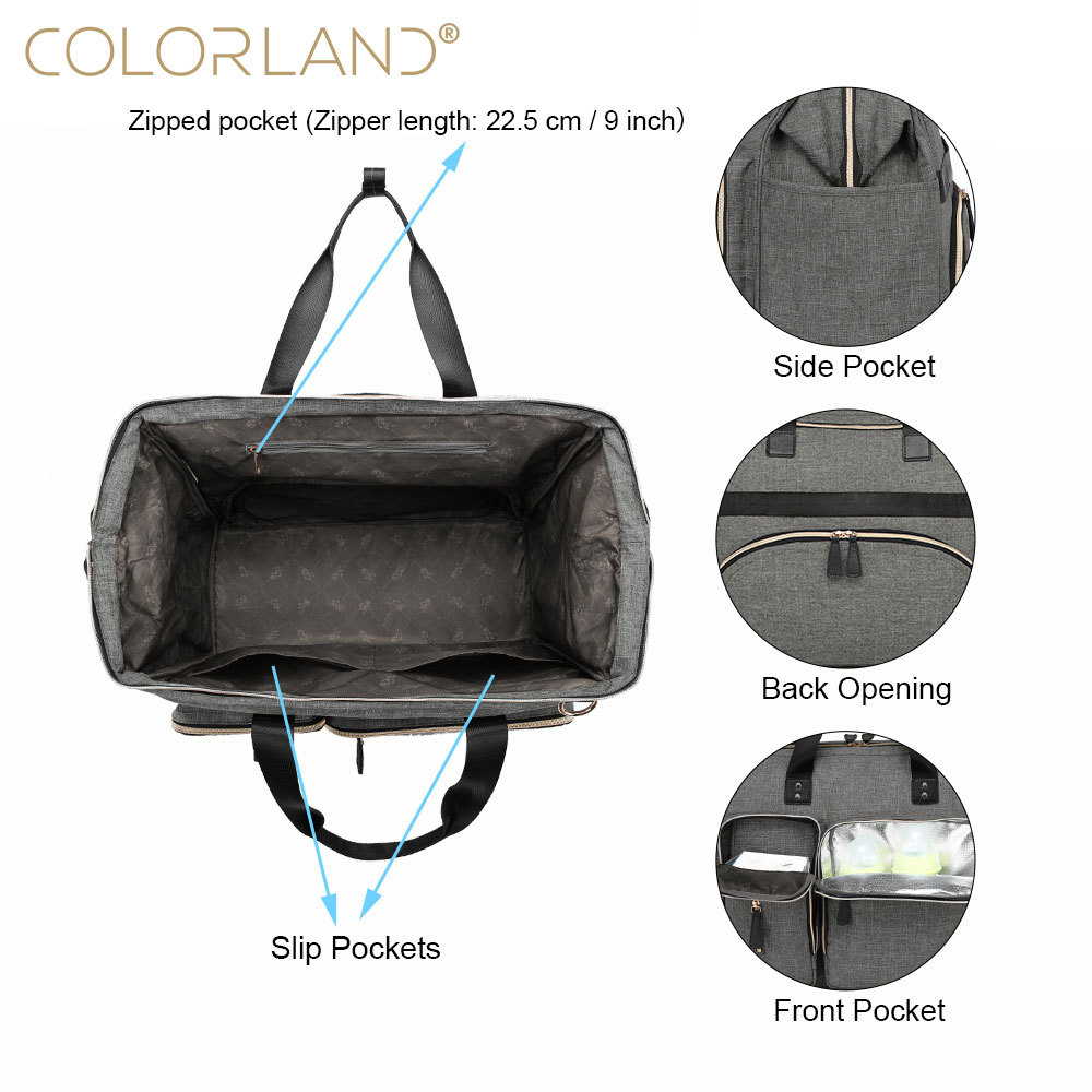 | nameOriginal | COLORLAND multi-functional large-capacity thermal insulation Mummy bag Baoma going out large-capacity mother and baby bag for foreign trade |