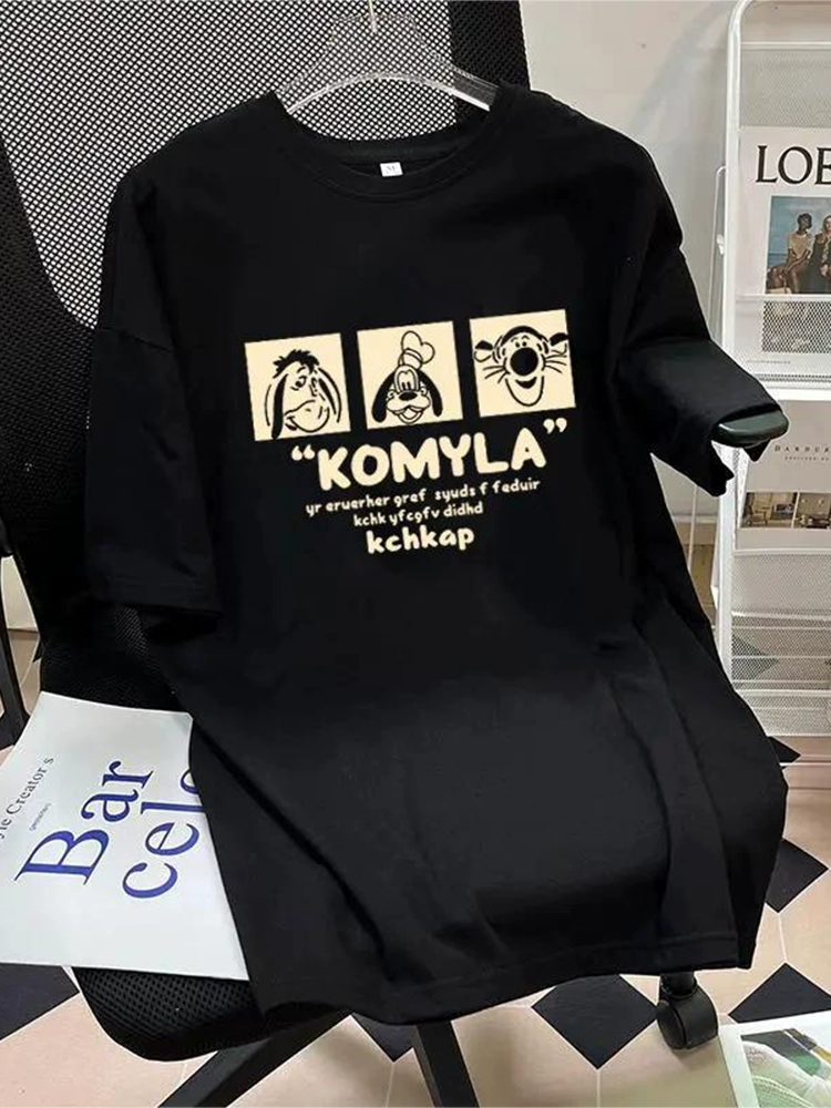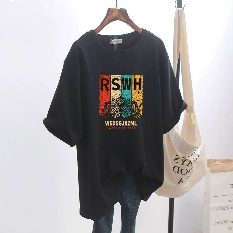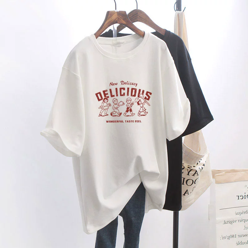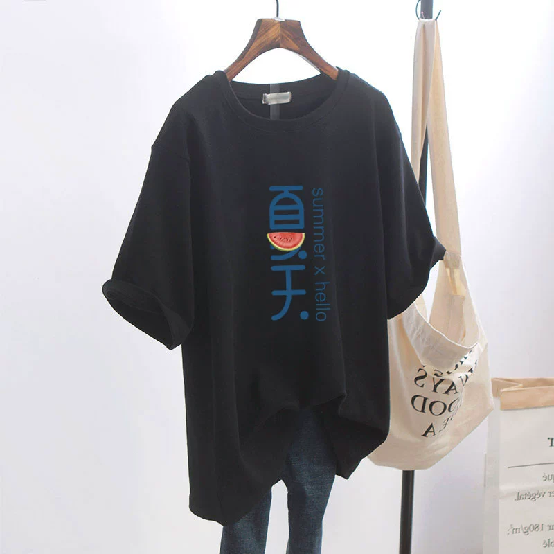 | nameOriginal | Combed cotton printed ins large black short-sleeved T-shirt |