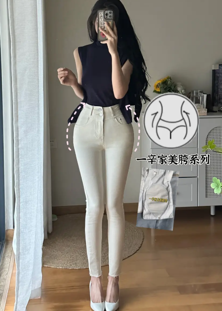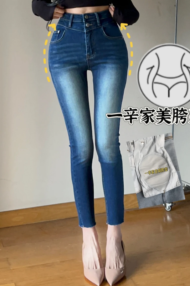 | nameOriginal | Comes with crotch pad, Dongdaemun, South Korea, high-waisted double-button elastic hip-lifting slimming pencil nine-point small-foot jeans for women |