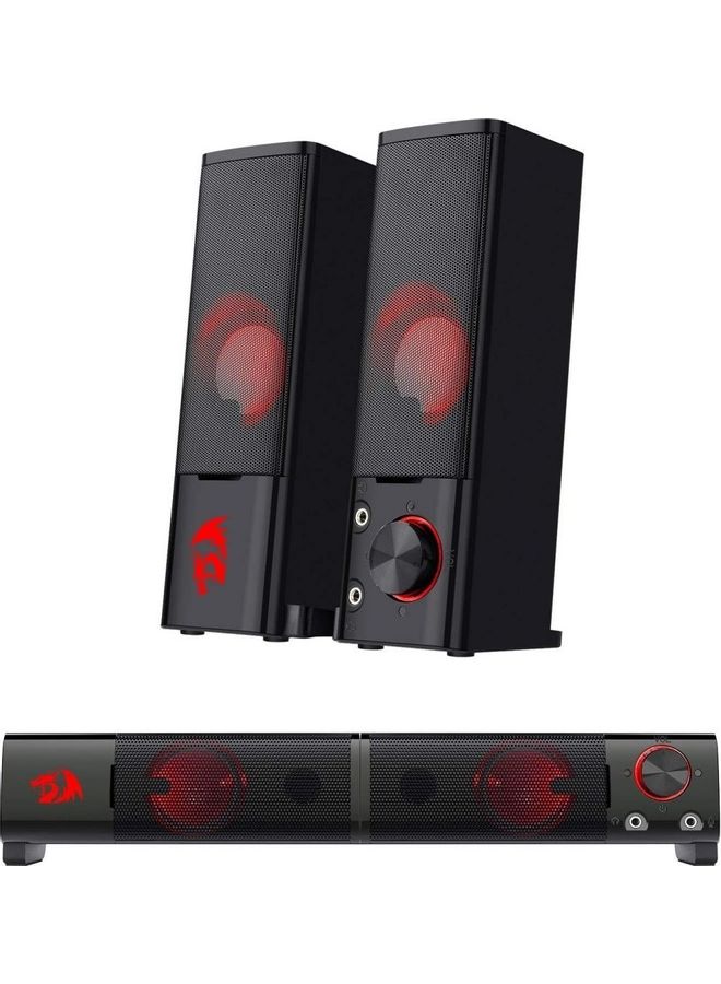 | nameOriginal | GS550 Orpheus PC Gaming Speakers, 2.0 Channel Stereo Desktop Computer Sound Bar With Compact Maneuverable Size, Bass And Decent Red Backlit, USB Powered w/ 3.5mm Cables |