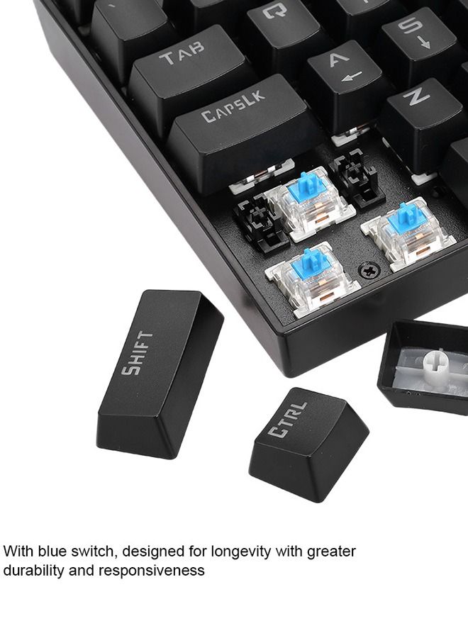 Introducing the Mechanical Gaming Keyboard 60% Compact 87 Key Wired Blue Switches for Windows PC Gamers (RED Backlit Black). This keyboard is designed to take your gaming experience to the next level. With its compact size, it is perfect for gamers who are always on the go. The 87 key layout ensures that you have all the keys you need to dominate your opponents. The blue switches provide a tactile and audible feedback that is perfect for gaming. The red backlit keys make it easy to see the keys in low light conditions. The black color gives it a sleek and professional look that will complement any gaming setup. This keyboard is compatible with Windows PC and is easy to set up. Get ready to take your gaming to the next level with the Mechanical Gaming Keyboard 60% Compact 87 Key Wired Blue Switches for Windows PC Gamers (RED Backlit Black).