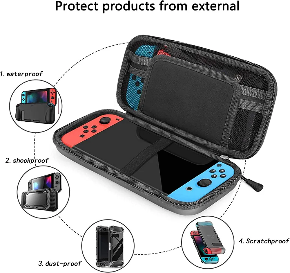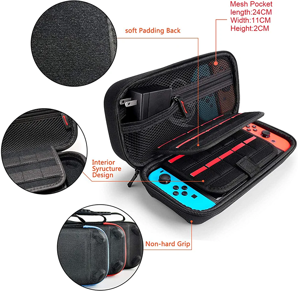 The case features multiple pockets for accessories and games, allowing you to keep everything organized and in one place. The pockets are designed to hold your Joy-Con controllers, charging cables, and other accessories, so you can easily access them when you need them. The case also has a secure zipper closure that keeps everything inside safe and secure.