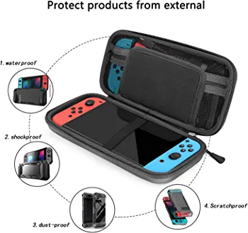 The case features multiple pockets for accessories and games, allowing you to keep everything organized and in one place. The pockets are designed to hold your Joy-Con controllers, charging cables, and other accessories, so you can easily access them when you need them. The case also has a secure zipper closure that keeps everything inside safe and secure.
