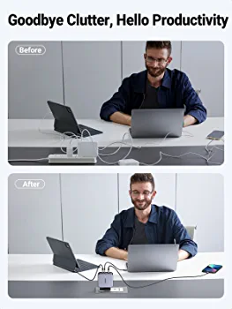 Efficiency is key, and this charger delivers with PD 3.1 super-fast charging and the ability to keep your workspace clean and elegant. Plus, with thermal guard technology and smart power distribution, you can rest easy knowing your devices are safe and secure.