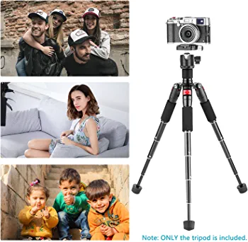 The package includes a 360-degree swivel ball head, a quick mounting plate, and a 1/4 inch quick release plate that can be easily installed in a few seconds. The tripod also features adjustable legs that can be set to the desired height, non-slip feet to keep it steady, and a sponge material grip for added comfort.