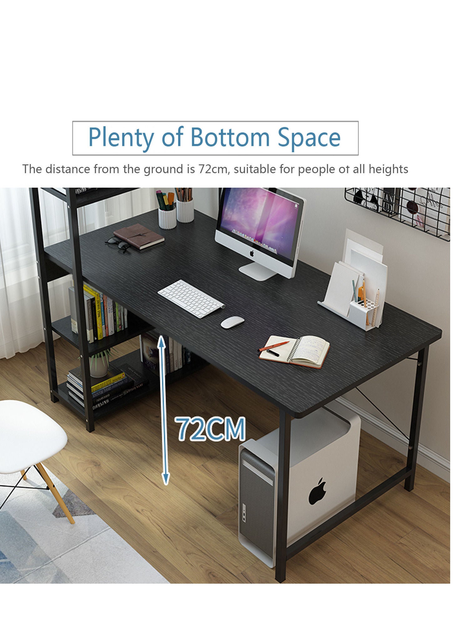 The ZUIHAO Computer Desk is the perfect addition to any home office or study space. With its modern wood and steel frame design, this desk is not only stylish but also durable and sturdy. The desk features 4 tier shelves that provide ample storage space for all your work essentials, including books, files, and office supplies. The desk is also perfect for gaming and writing, making it a versatile addition to any home. The compact design of the desk makes it ideal for small spaces, while the storage bookshelves provide a convenient and organized workspace. The ZUIHAO Computer Desk is the perfect workstation for anyone looking for a functional and stylish desk that can handle all their work needs.