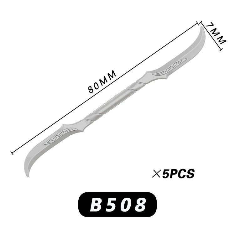 | nameOriginal | Compatible with small-sized minifigures wearing medieval weapon accessories, elf spear assembly scene building block toys |