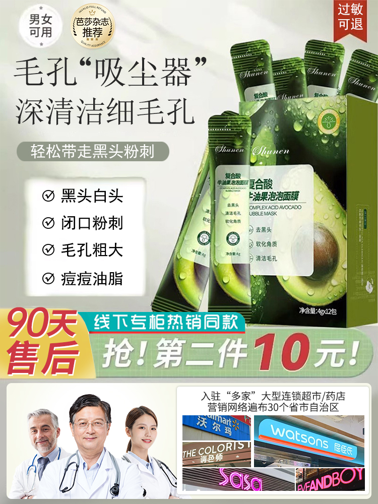 | nameOriginal | Complex sour avocado bubble mask deep cleansing black and white acne, closed pores flagship store official authentic product |