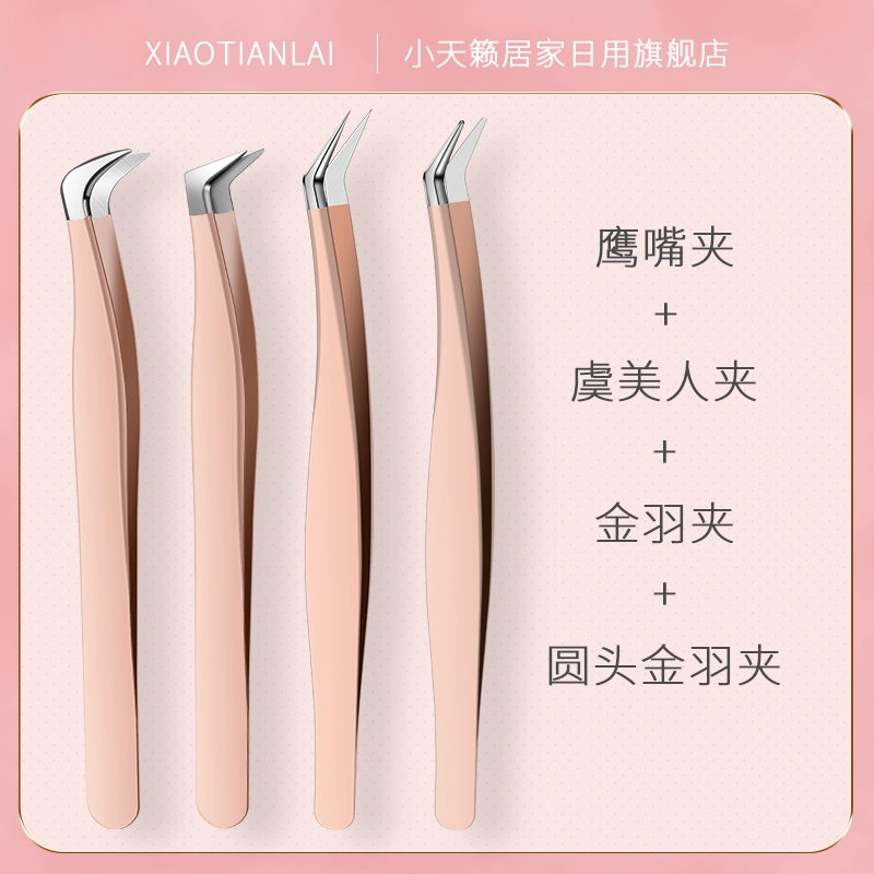 Component welding tweezers, false eyelash curlers, double eyelid stickers, special eagle beak clips for beauty eyelashes, gold feather clips for makeup artists