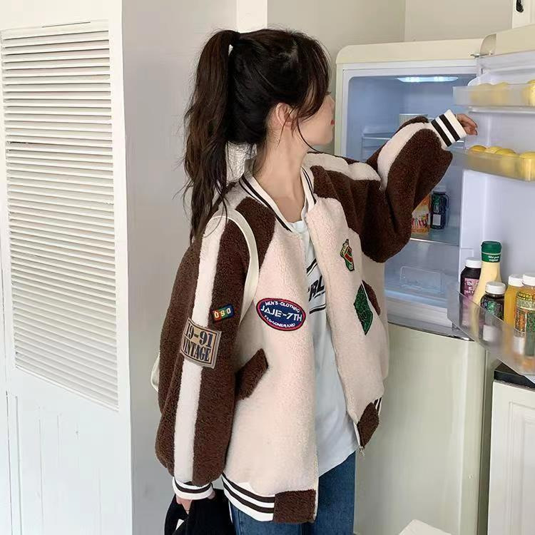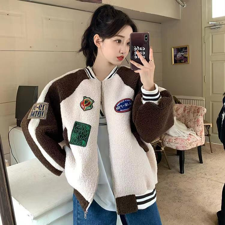 | nameOriginal | Composite Super lamb wool coat for women autumn and winter New loose plus size fur integrated granular fleece baseball uniform fashion |