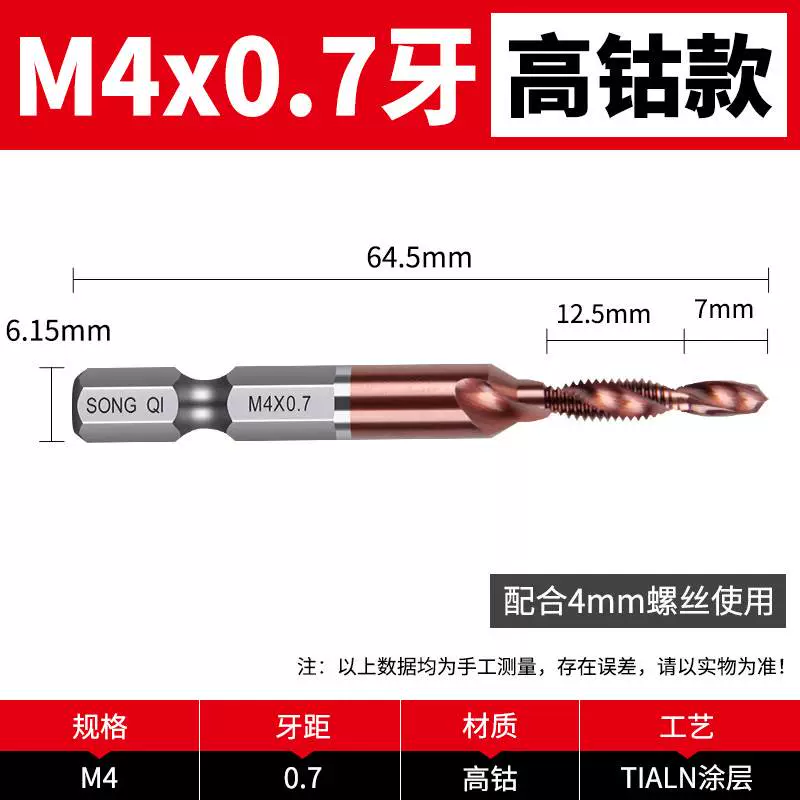 | nameOriginal | Composite tap and tapping drill bit for drilling and tapping machine, spiral stainless steel special tapping self-tapping m4 |
