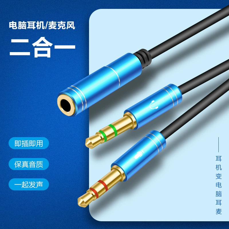 Computer headphone adapter, audio cable two-in-one adapter, mobile phone microphone one-in-two converter splitter
