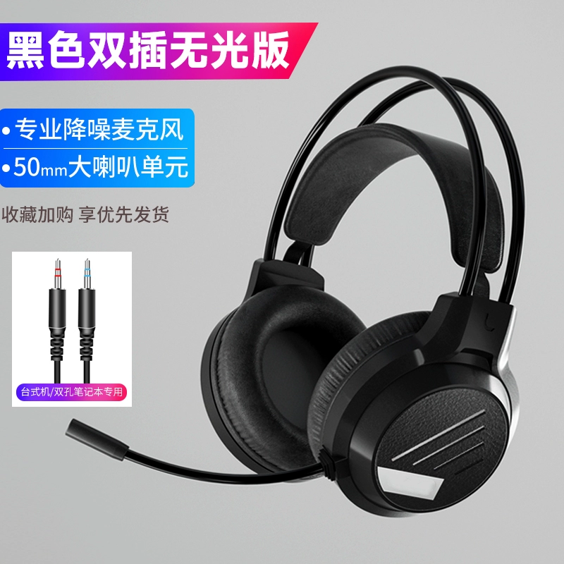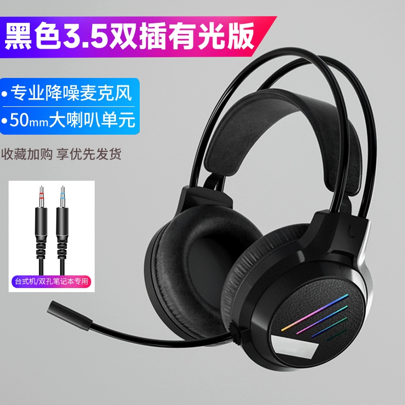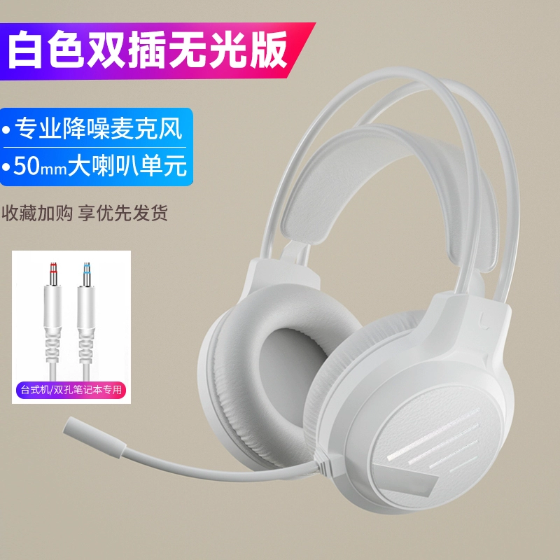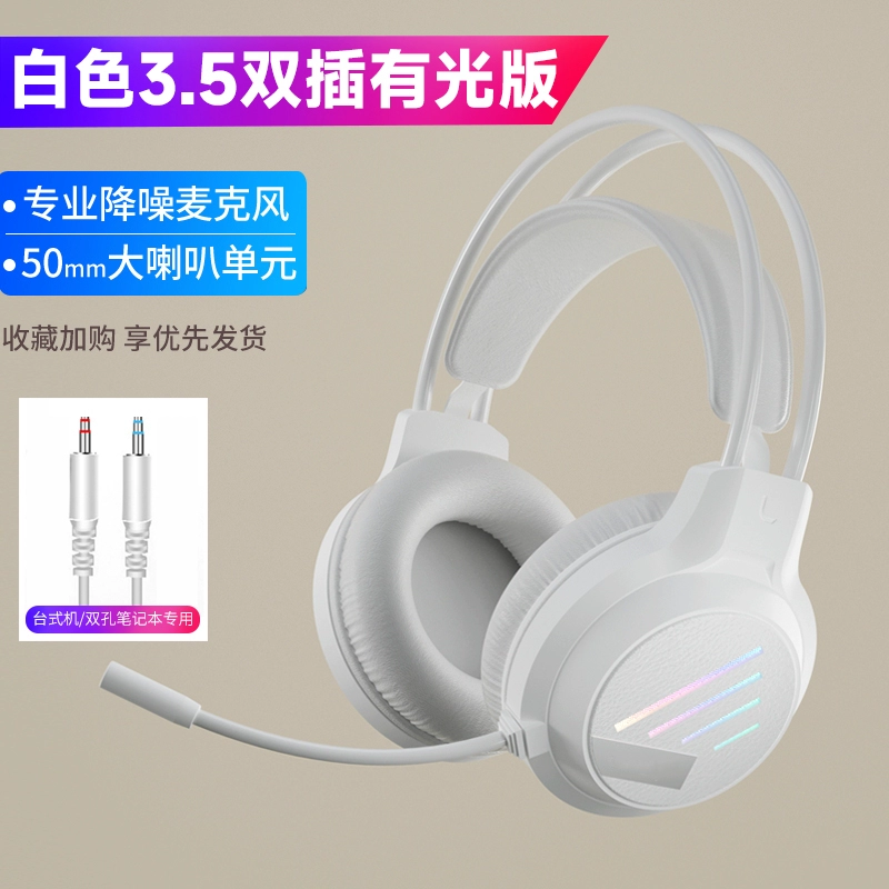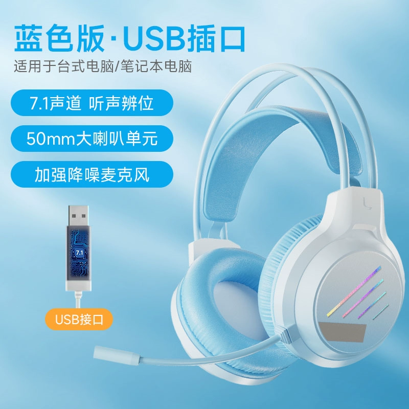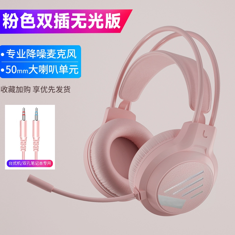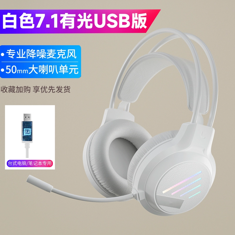 Computer headset head-mounted wired e-sports noise reduction gaming headset USB desktop notebook with microphone for women