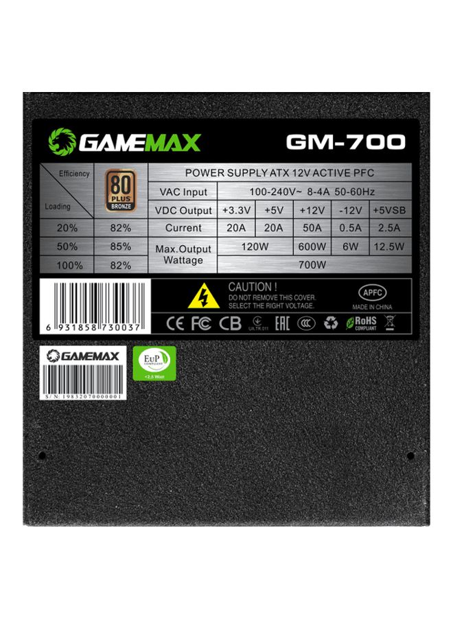 The GM-700 Computer Power Supply is a high-quality power supply unit designed to provide reliable and efficient power to your computer system. With a maximum power output of 700 watts, this power supply is capable of handling even the most demanding computer components, ensuring stable and consistent power delivery to your system. The GM-700 features a modular design, allowing you to easily connect only the cables you need, reducing cable clutter and improving airflow within your computer case. Additionally, this power supply is equipped with multiple safety features, including over-voltage, over-current, and short-circuit protection, ensuring the safety and longevity of your computer components. Upgrade your computer’s power supply with the GM-700 and experience improved performance and stability.