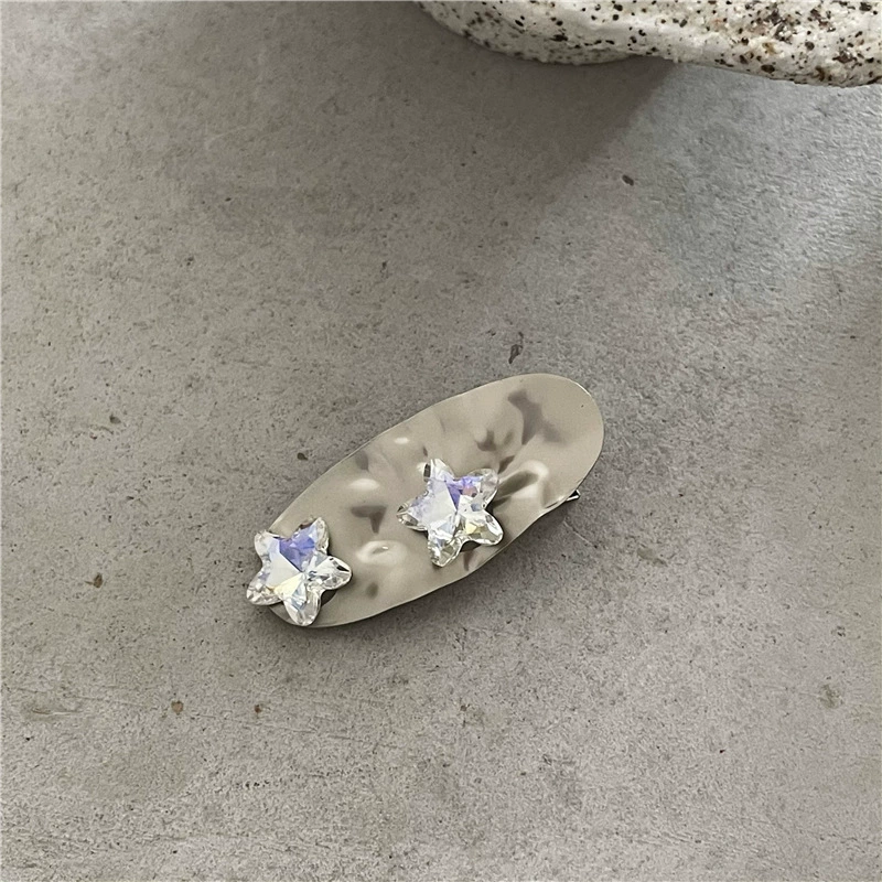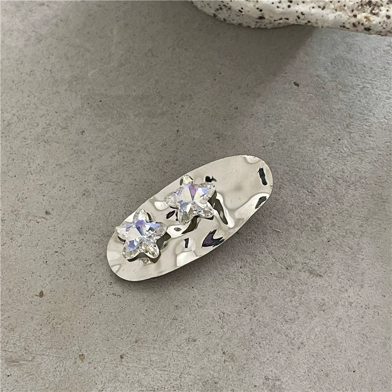 | nameOriginal | Concave and convex sweet and cool style y2k rhinestone five-pointed star hair clip metal silver gray duckbill clip design oval bangs clip for women |