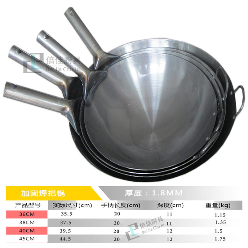 | nameOriginal | Concave Induction Cooker Chef Hotel Thickened 45cm Wrought Iron Round Bottom Pot Burning Lobster Large Single Handle Iron Pan Frying Pan |