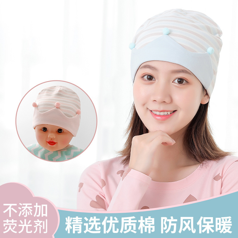 Confinement cap postpartum autumn and winter windproof fashion cute pure cotton maternal cap parent cap set breathable cap