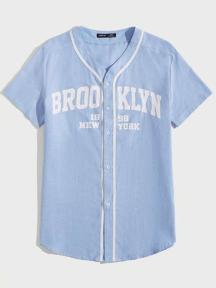 SHEIN Men Letter Graphic Contrast Binding Shirt