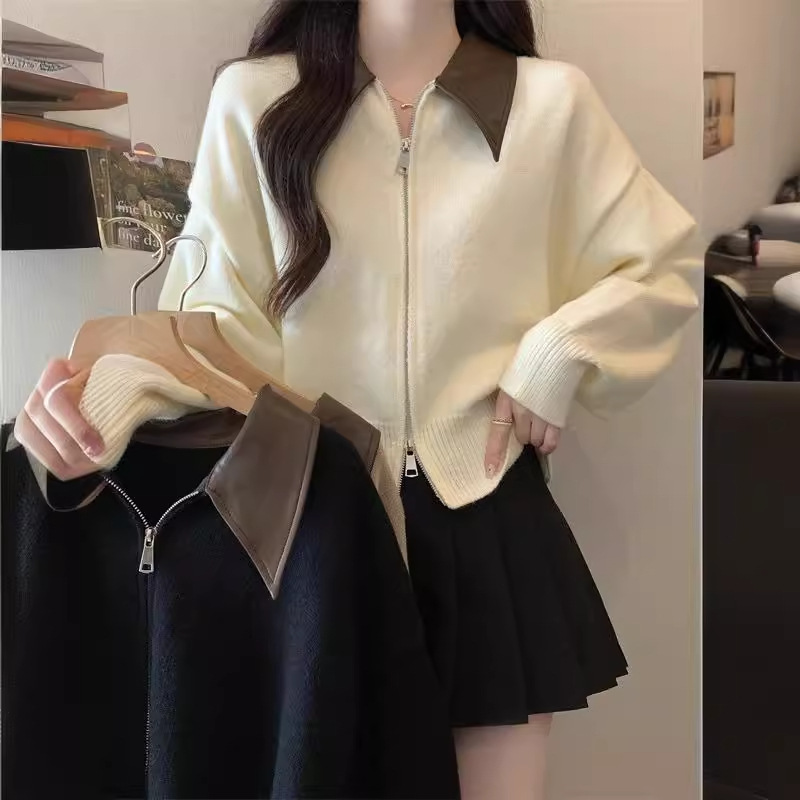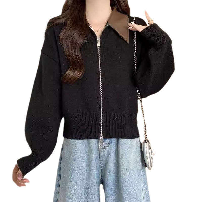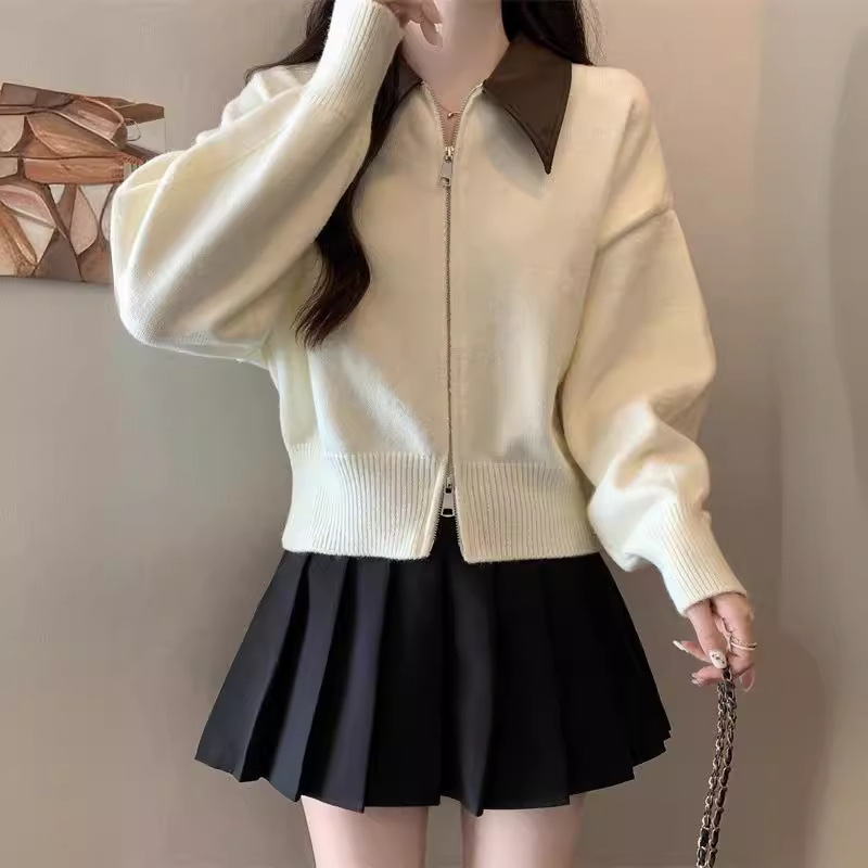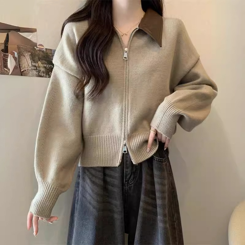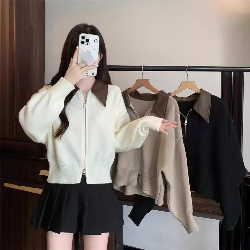 | nameOriginal | Contrast Collar Double Zipper Pullover Sweater Women's Spring and Autumn Slim-fit Slim-fit Short Top Sweater Women's Small Coat |