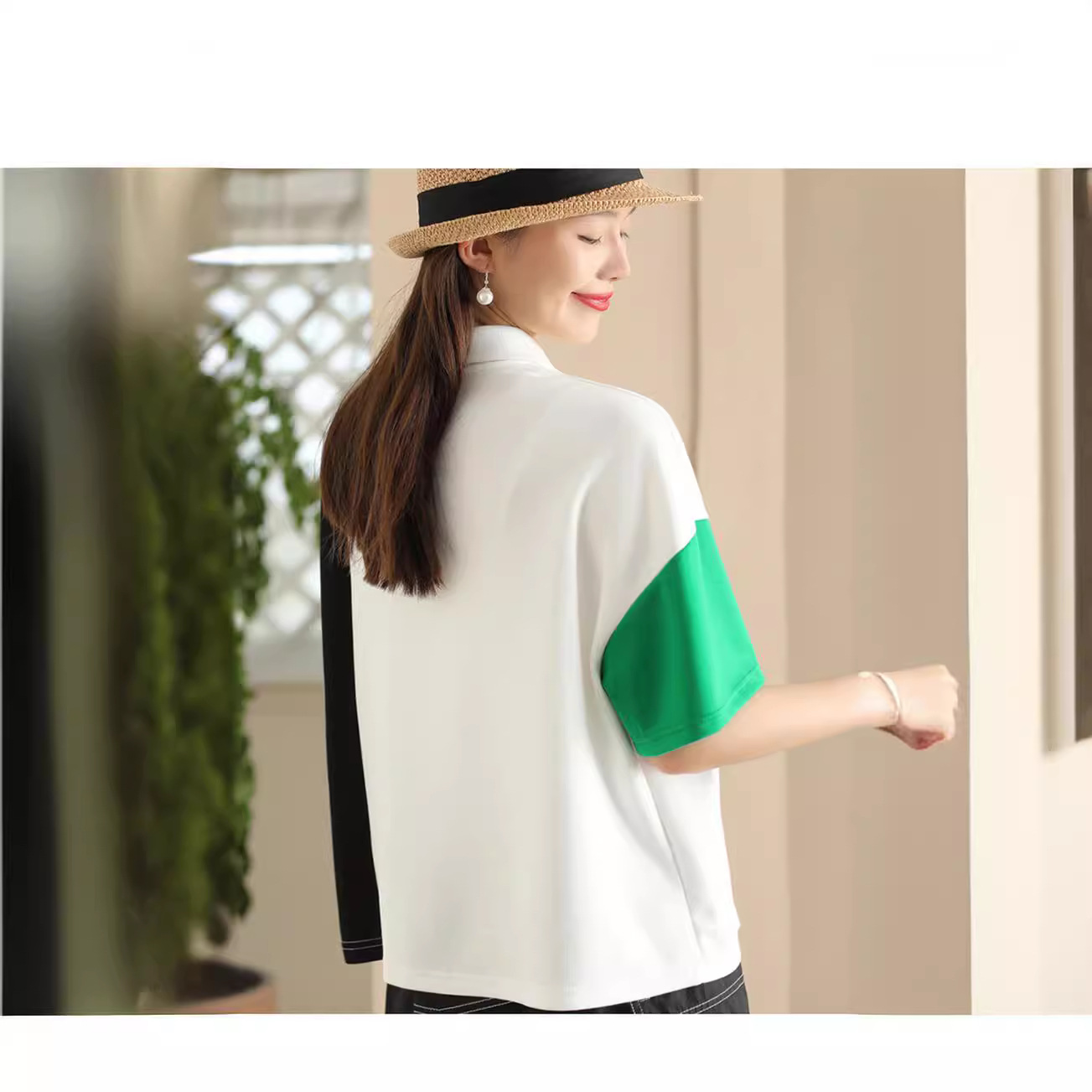 | nameOriginal | Contrast Color Air Cotton POLO Shirt 2024 Simple Korean Fashion Commuter All-match Loose Casual Pullover T-shirt Top |