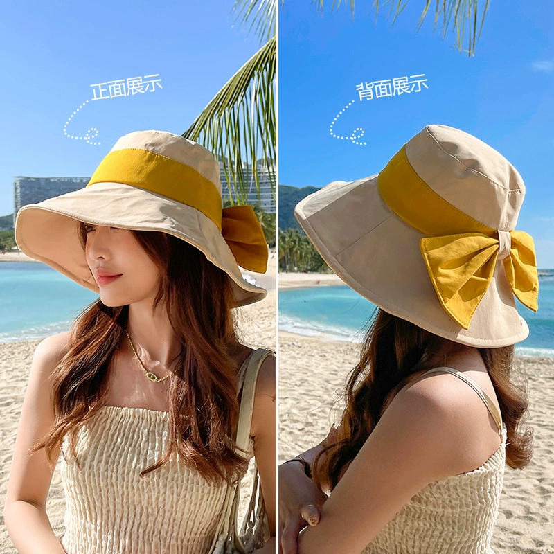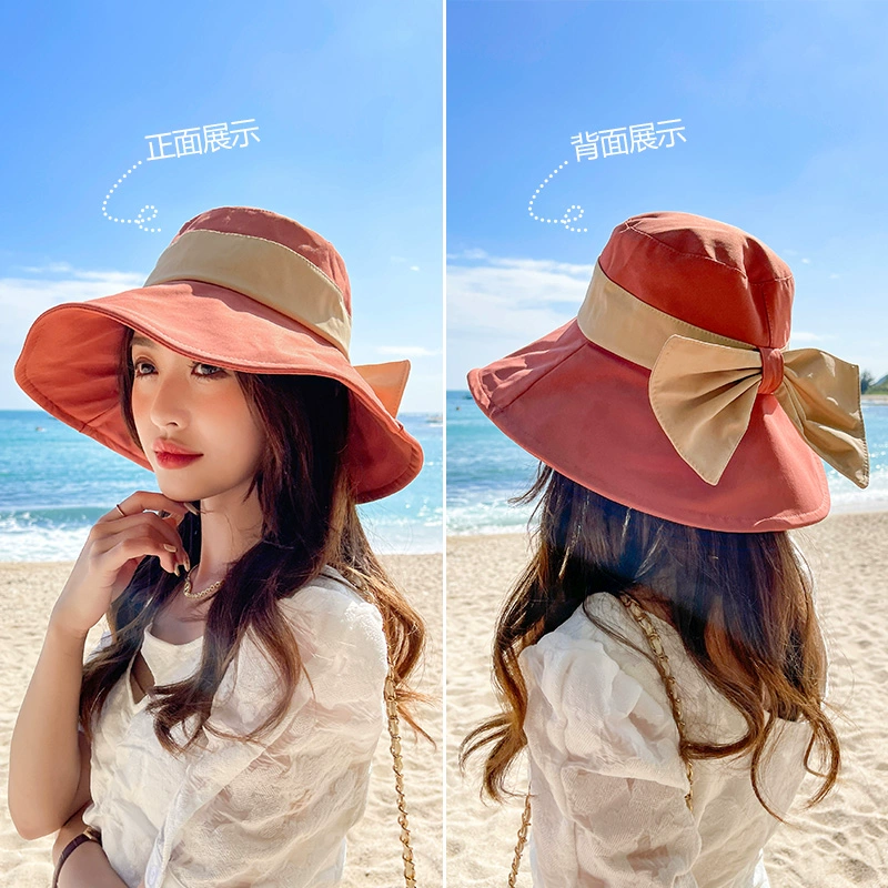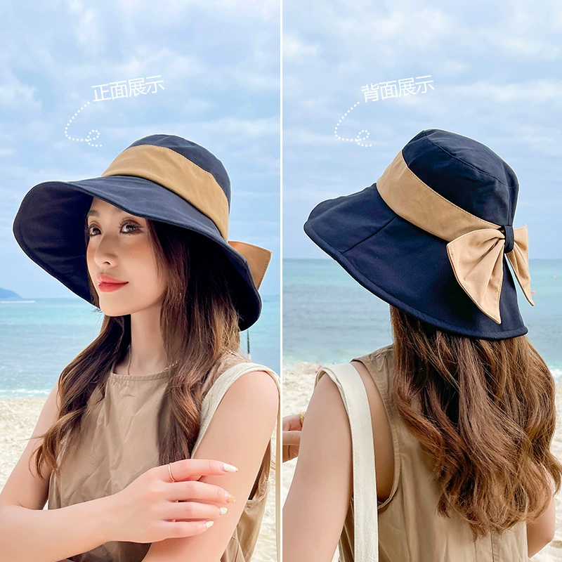 | nameOriginal | Contrast color bow fisherman hat summer travel women's hat sun protection sunshade versatile sun hat solid color versatile cloth hat |