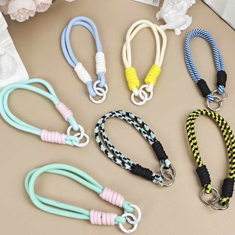 Contrast Color Braided Rope Short Mobile Phone Lanyard Portable Anti-lost Rope Hanging Wrist Pendant Wristband Dopamine for Women