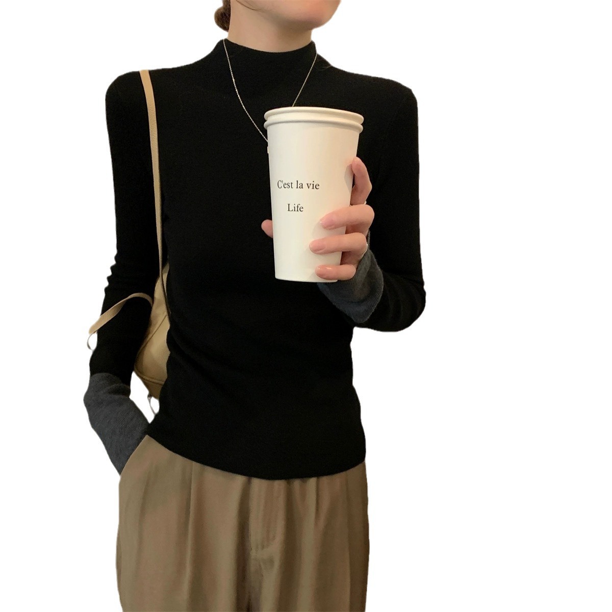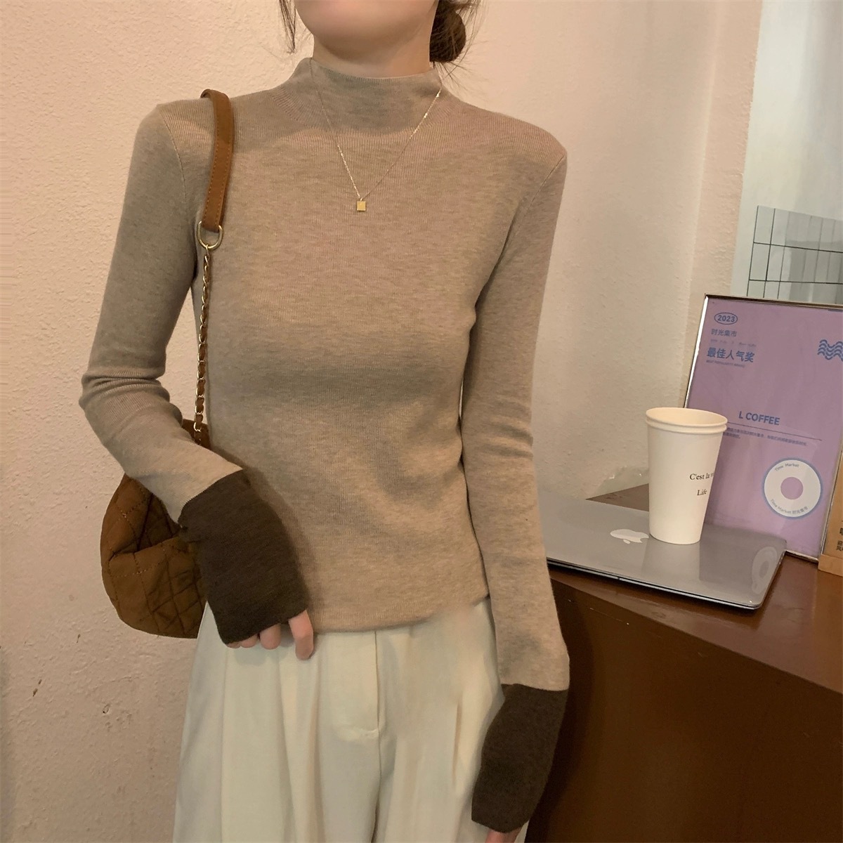 | nameOriginal | Contrast Color Half-turtleneck Knitted Sweater Women's Autumn and Winter New High-end Sense Slim-fit Slimming Western-style Base Shirt Inner Top |