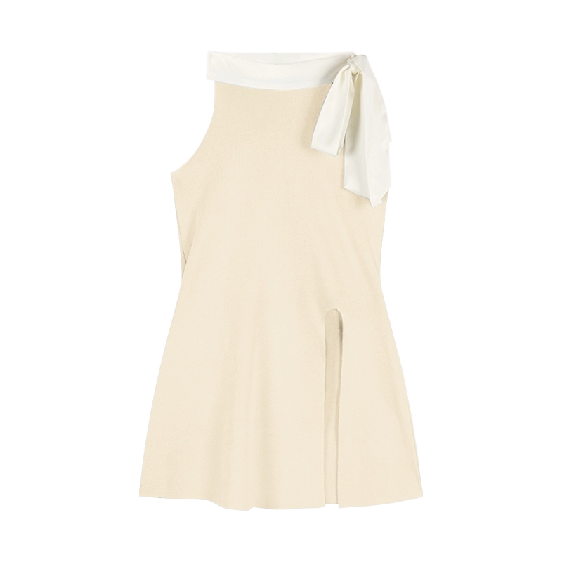 | nameOriginal | Contrast color halterneck slim fit niche slit sleeveless bow |