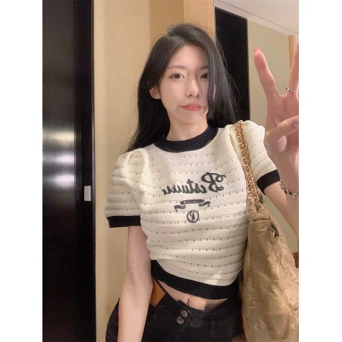 | nameOriginal | Contrast color knitted design niche hollow hollow short sleeves |