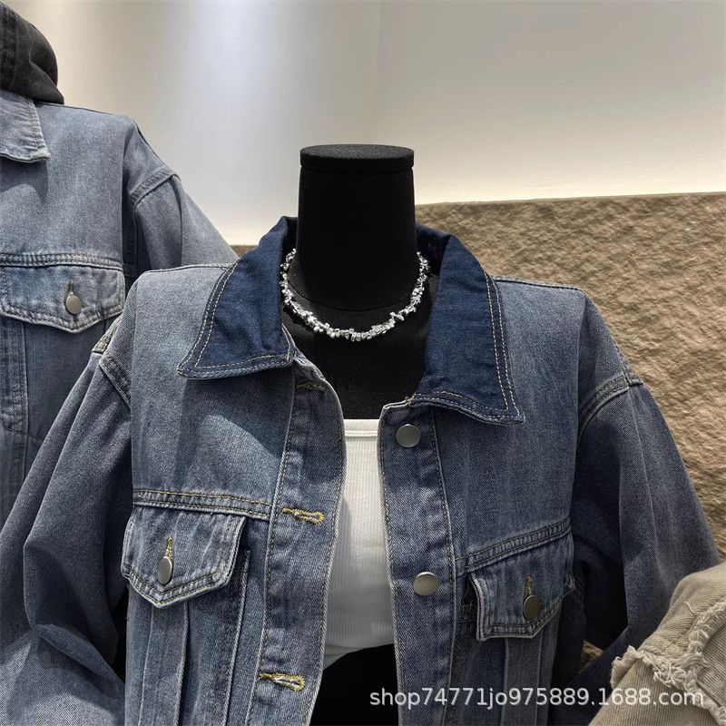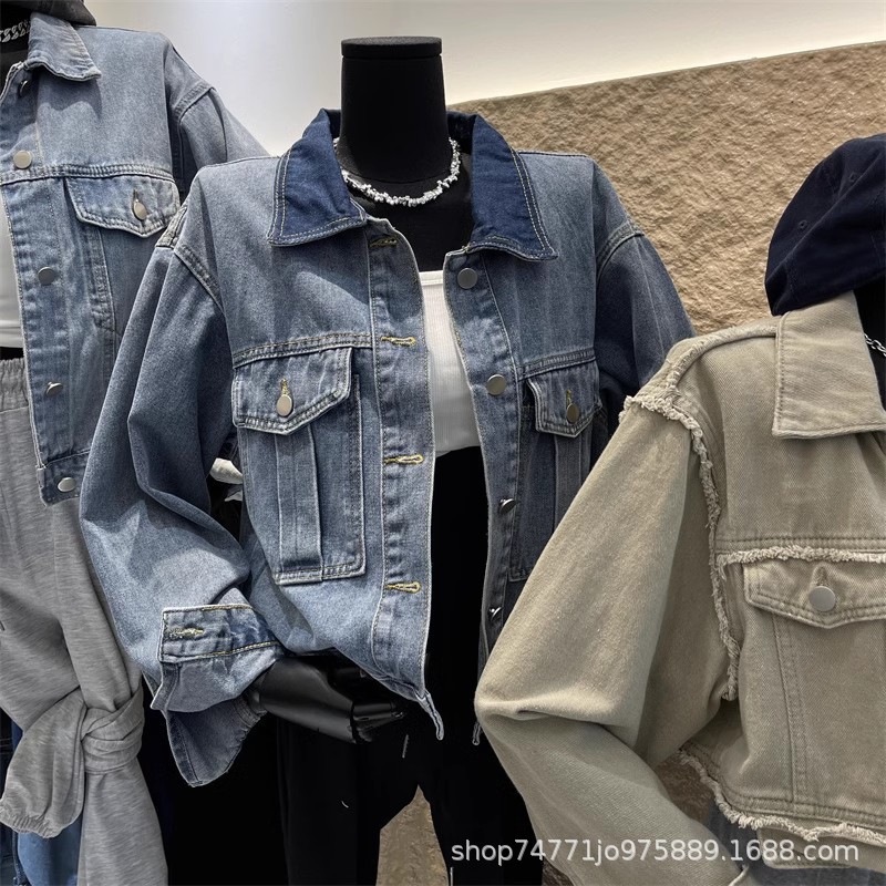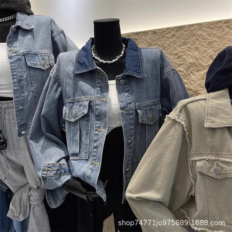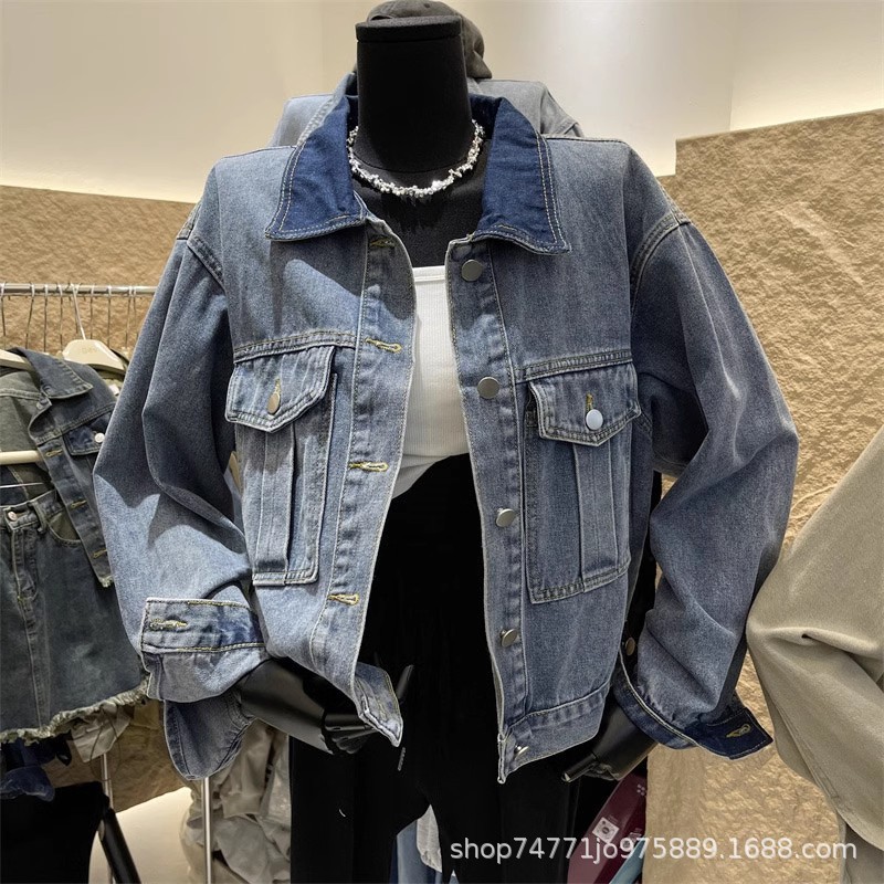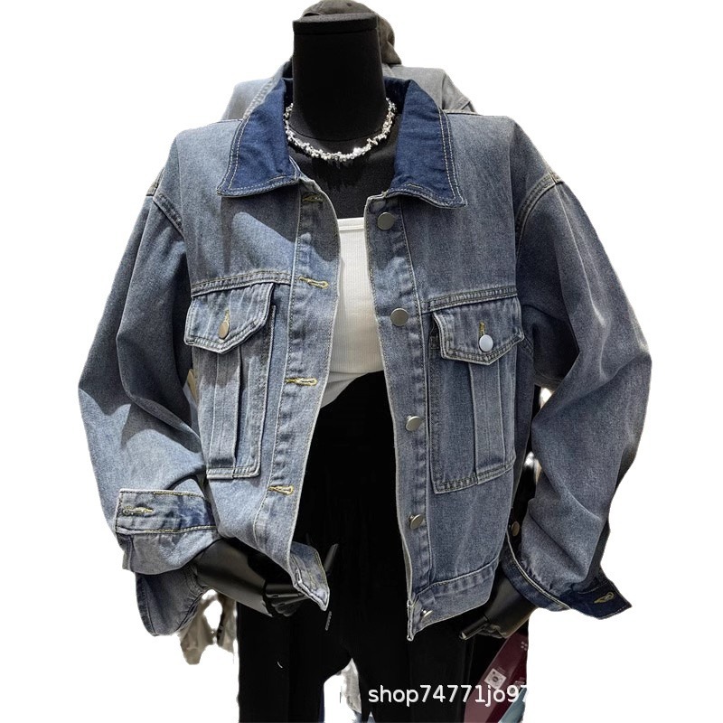 | nameOriginal | Contrast color lapel washed Denim coat for women Spring and Autumn New Hong Kong style retro loose casual workwear jacket fashionable top |
