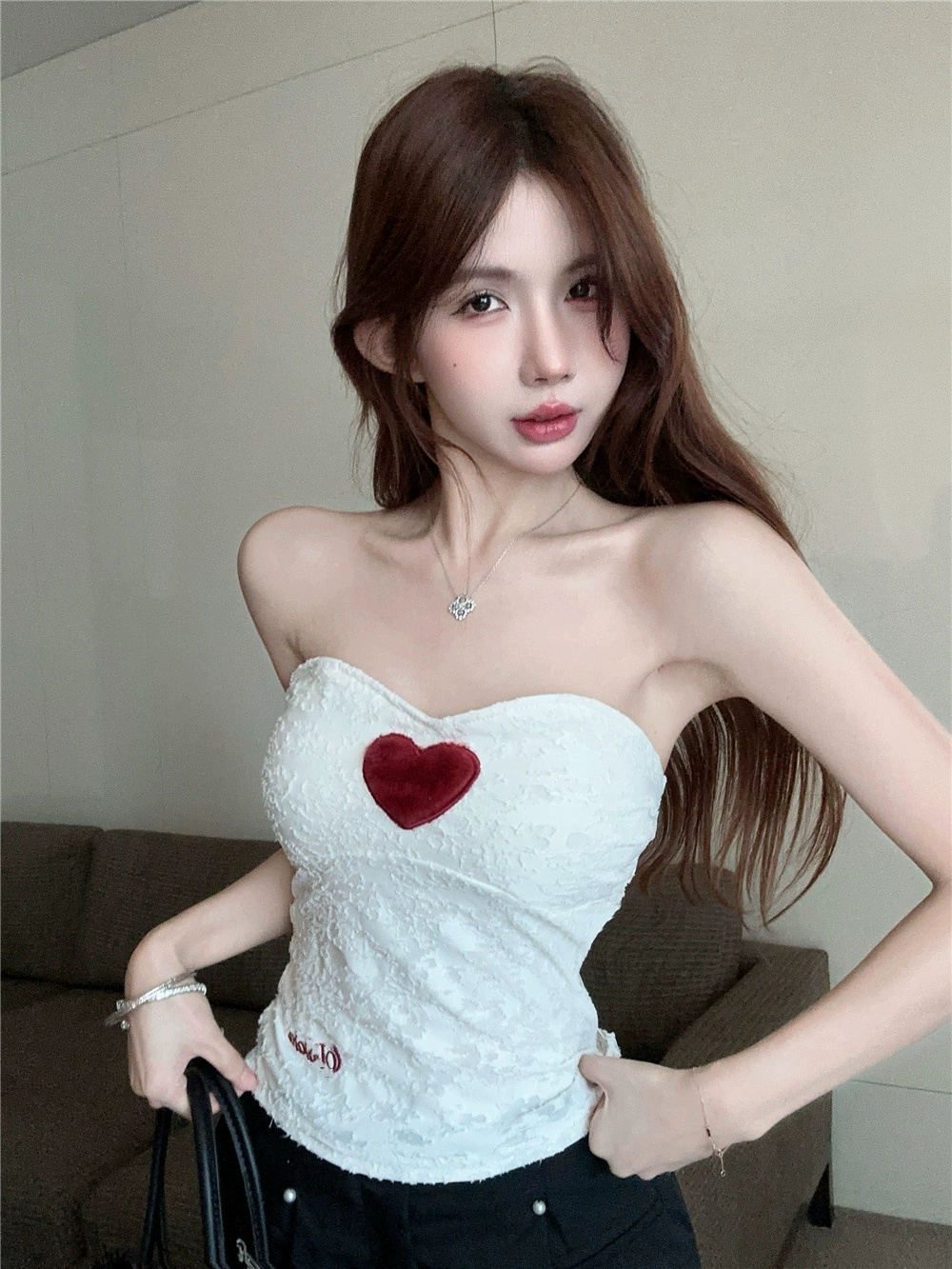 Contrast color love pure desire tube top for women summer 2024 new sexy slim slim sleeveless outer short top