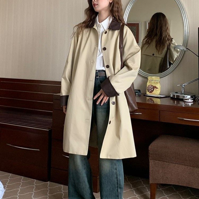 | nameOriginal | Contrast color mid-length retro trench coat 2020 Autumn New Korean style design sense niche milk series wear match |