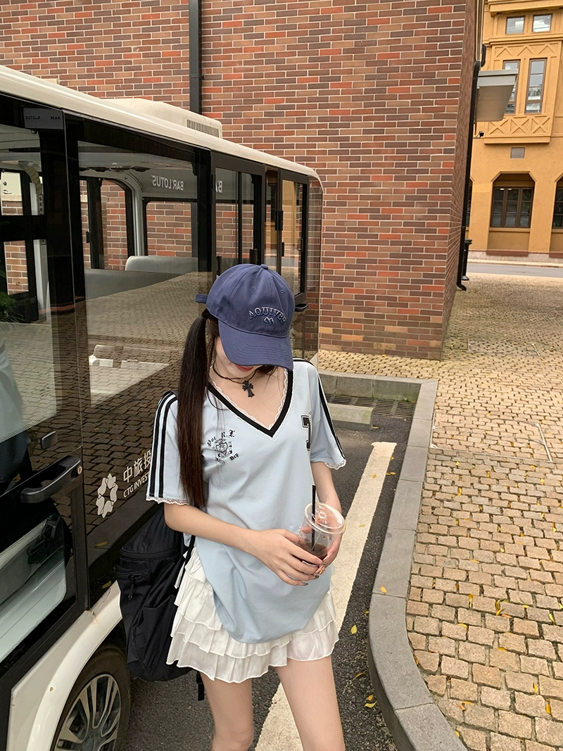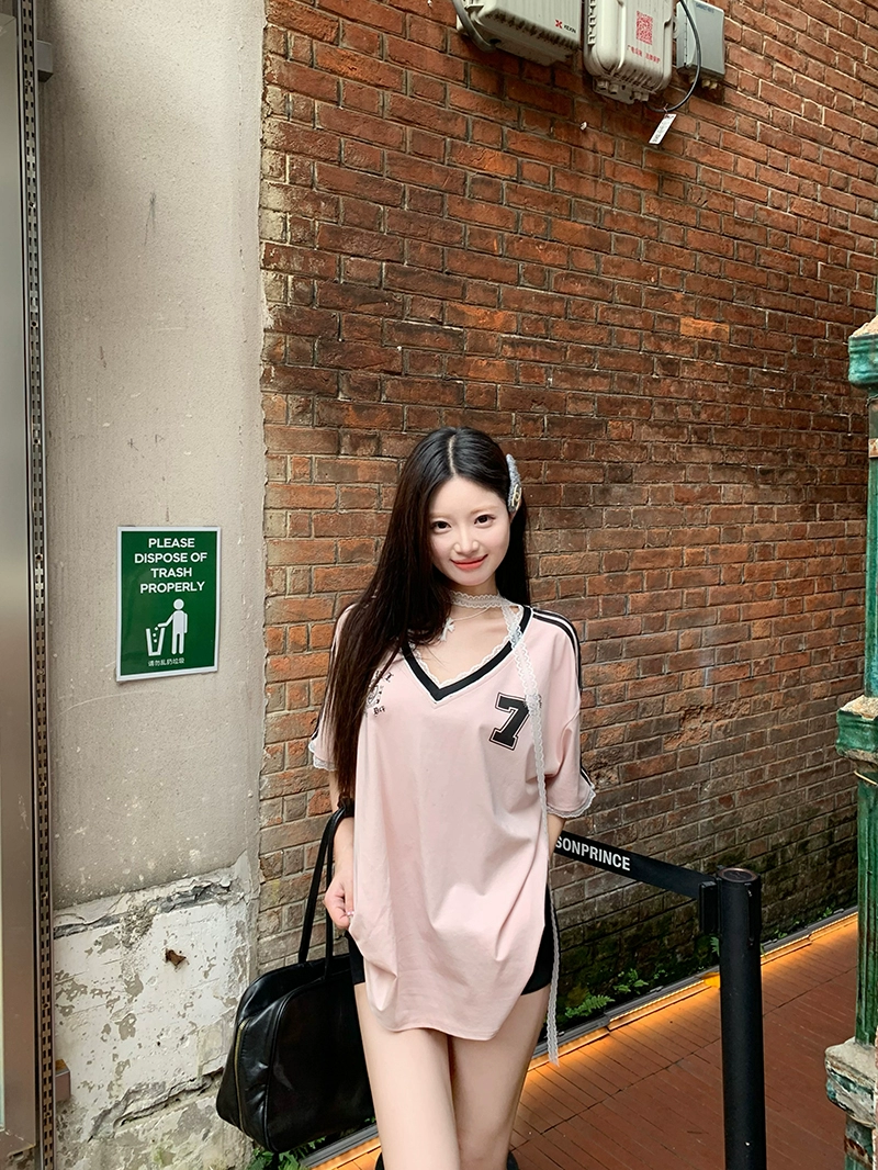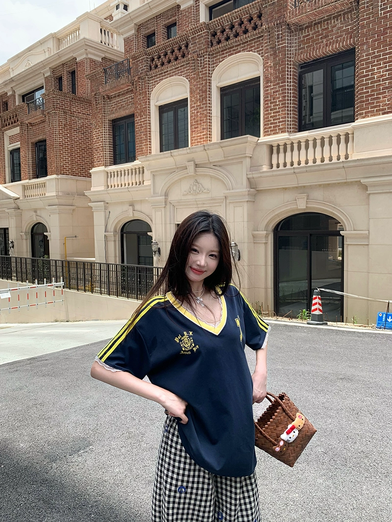 | nameOriginal | Contrast color printed v-neck short-sleeved loose summer casual T-shirt |