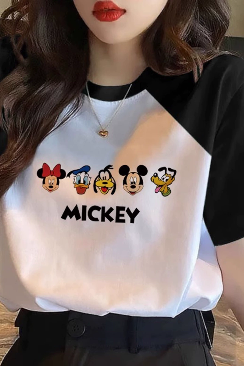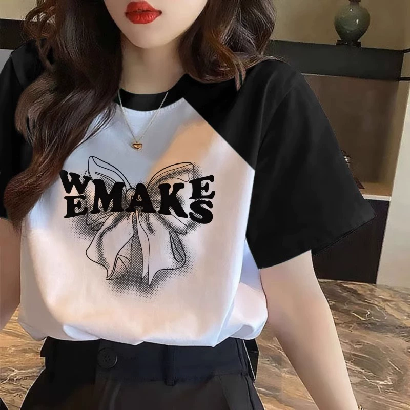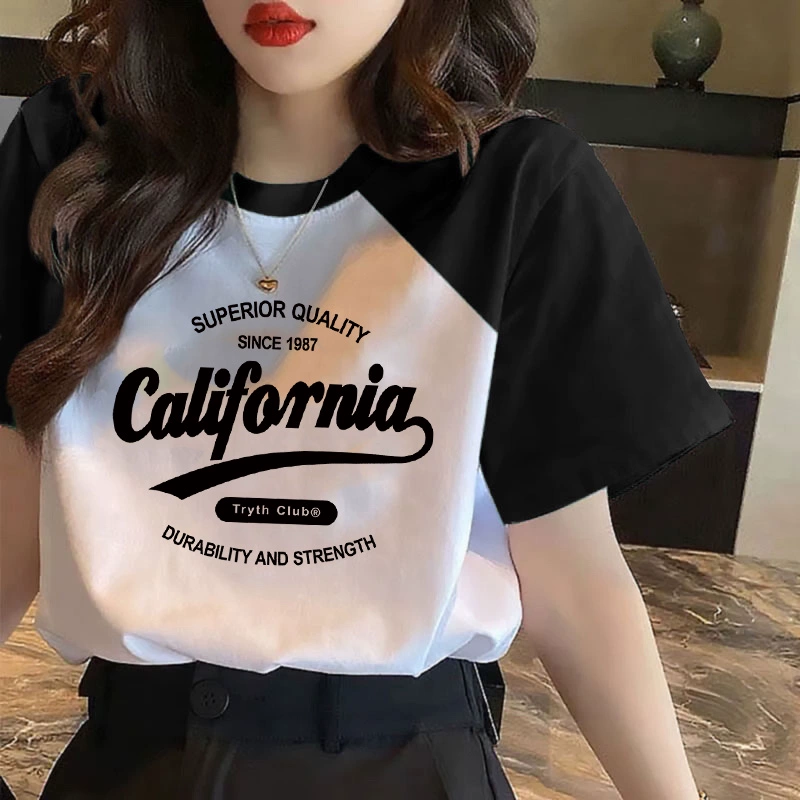Contrast color pure cotton summer loose design short-sleeved T-shirt