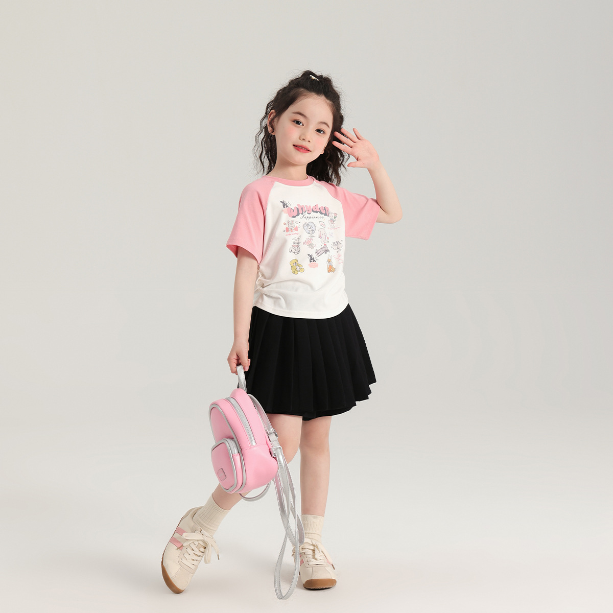 | nameOriginal | Contrast color raglan sleeves girls short sleeve summer 2024 new lightweight breathable children's short sleeve T-shirt side waist pleated fashion |