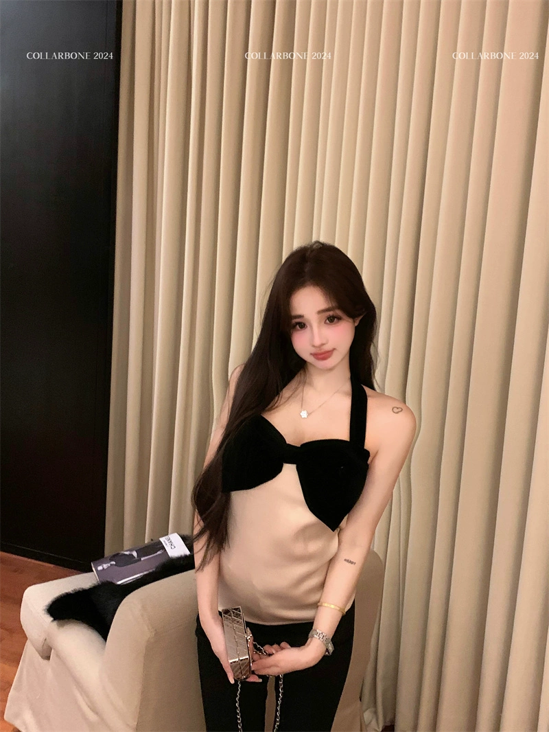 | nameOriginal | Contrast color satin halter neck strap retro slim bow |