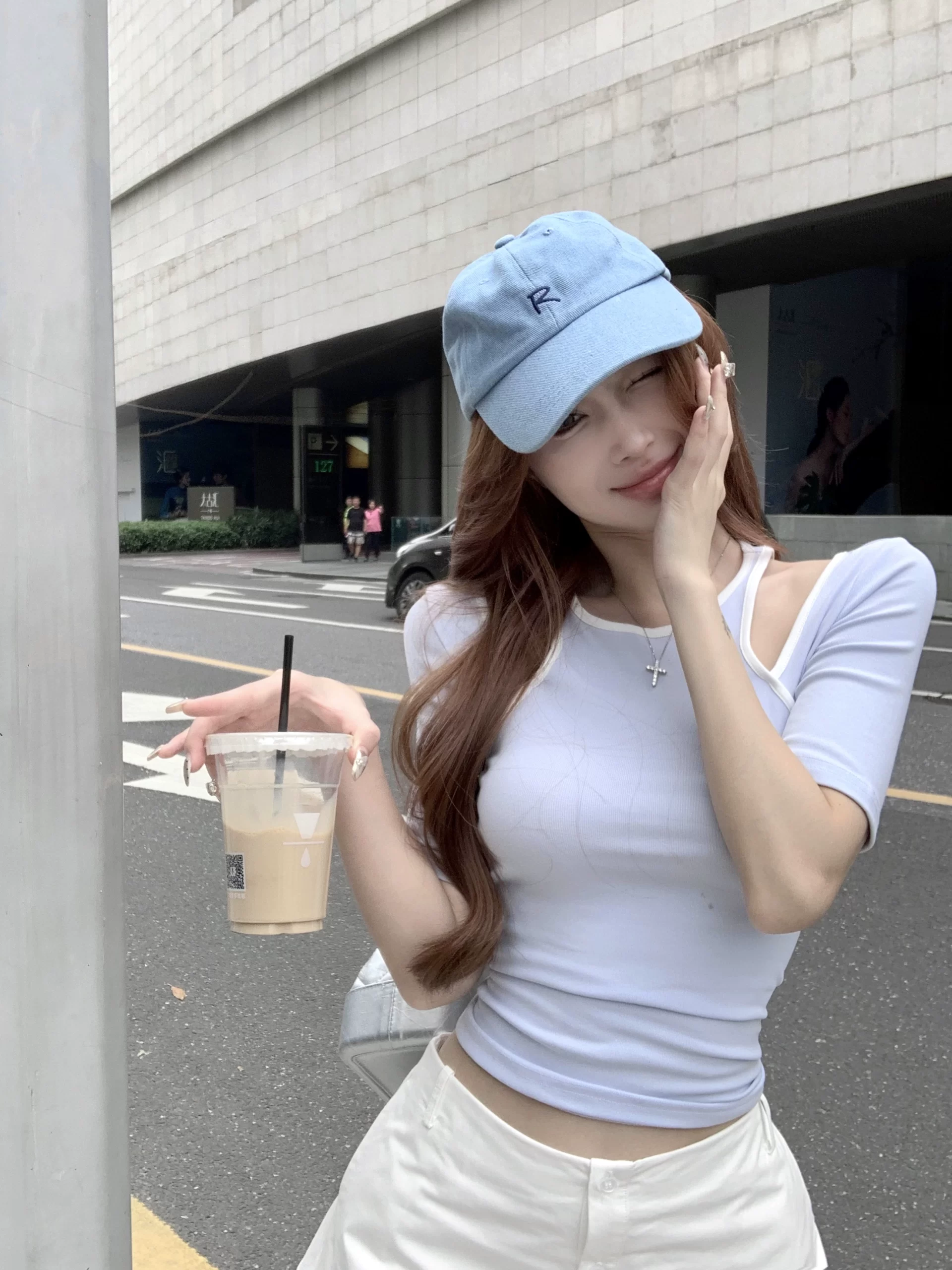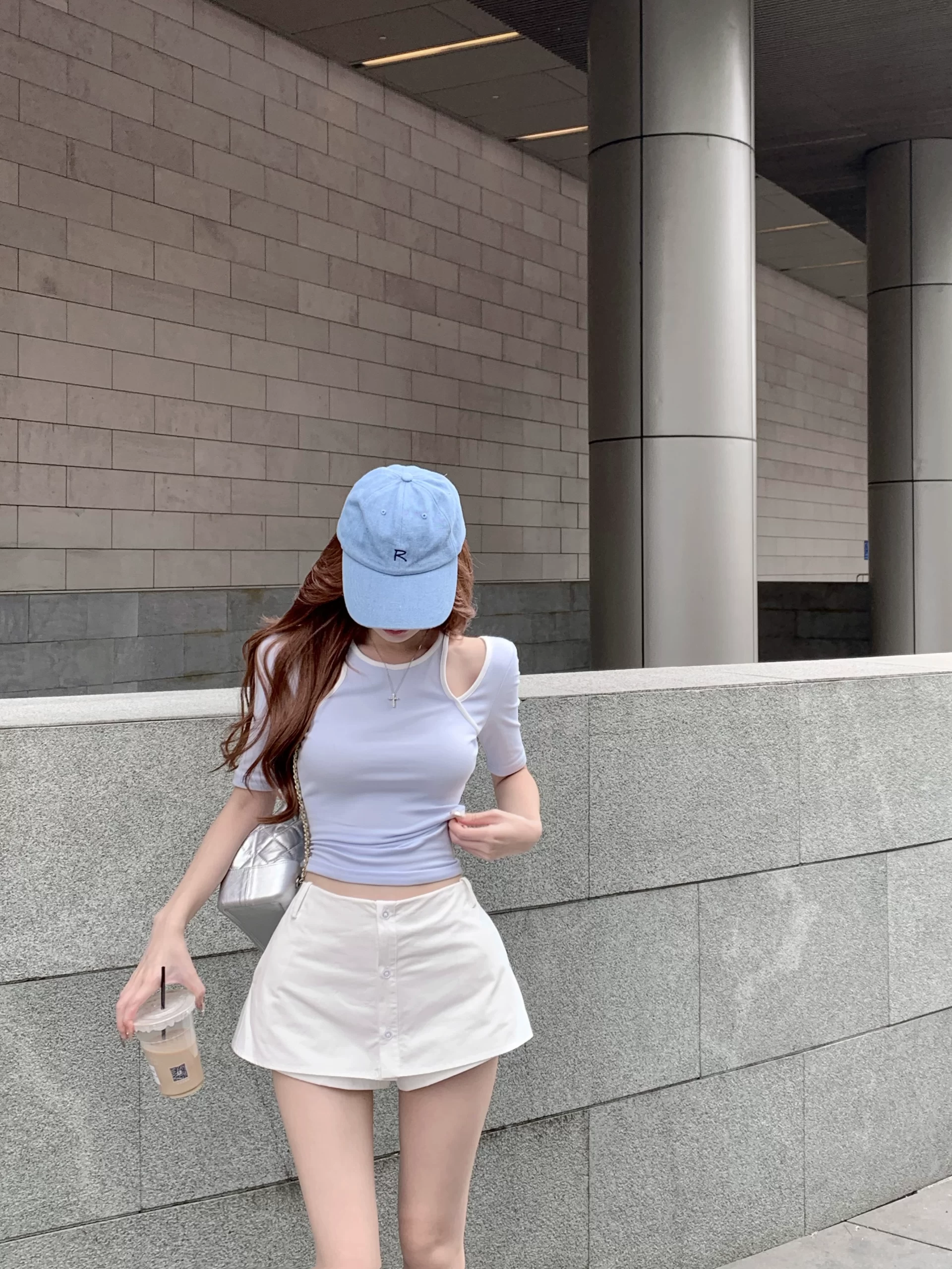| nameOriginal | Contrast color short-sleeved slim design round neck fake two-piece |