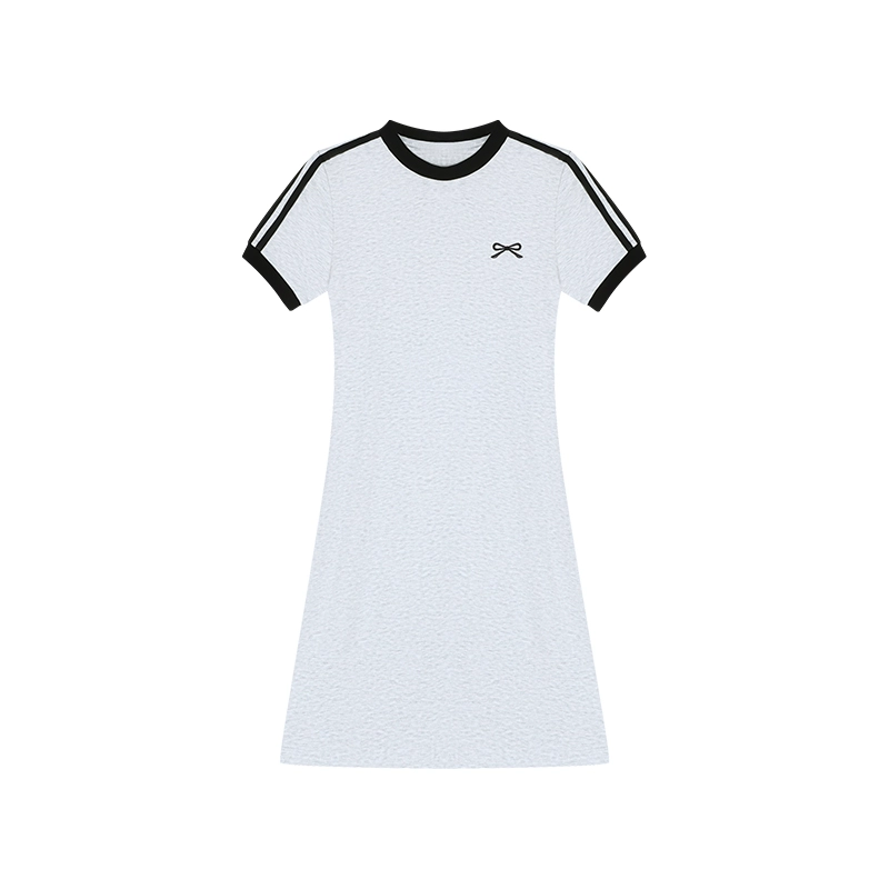 Contrast color short-sleeved summer slim fit hip skirt with bow tie