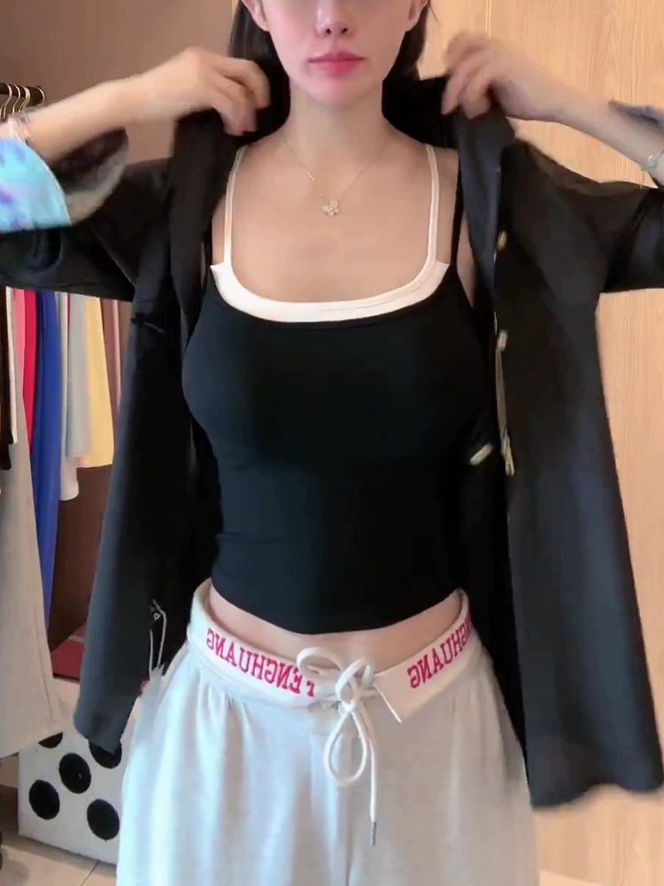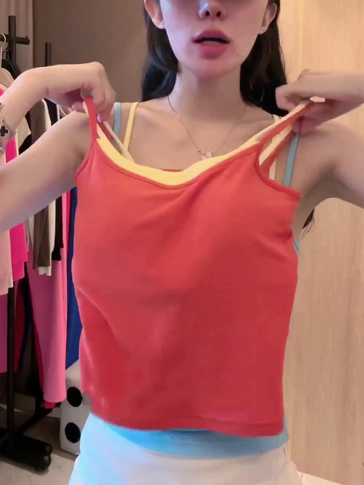 | nameOriginal | Contrast color shoulder summer dress with fake two-piece sexy belt and breast pads |
