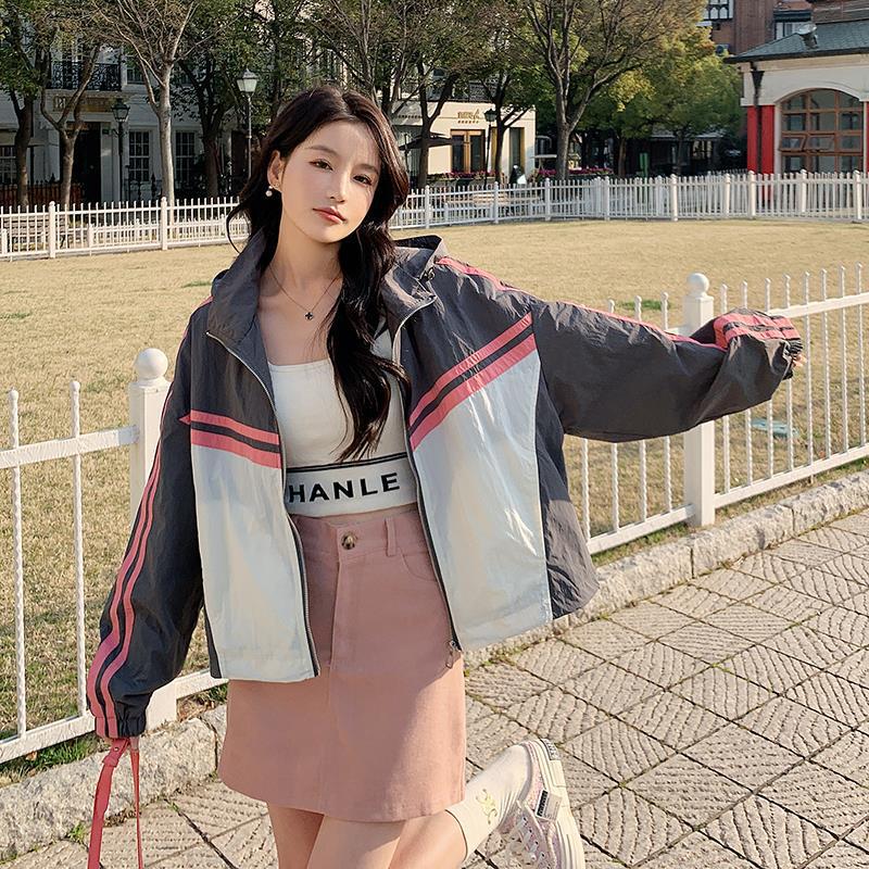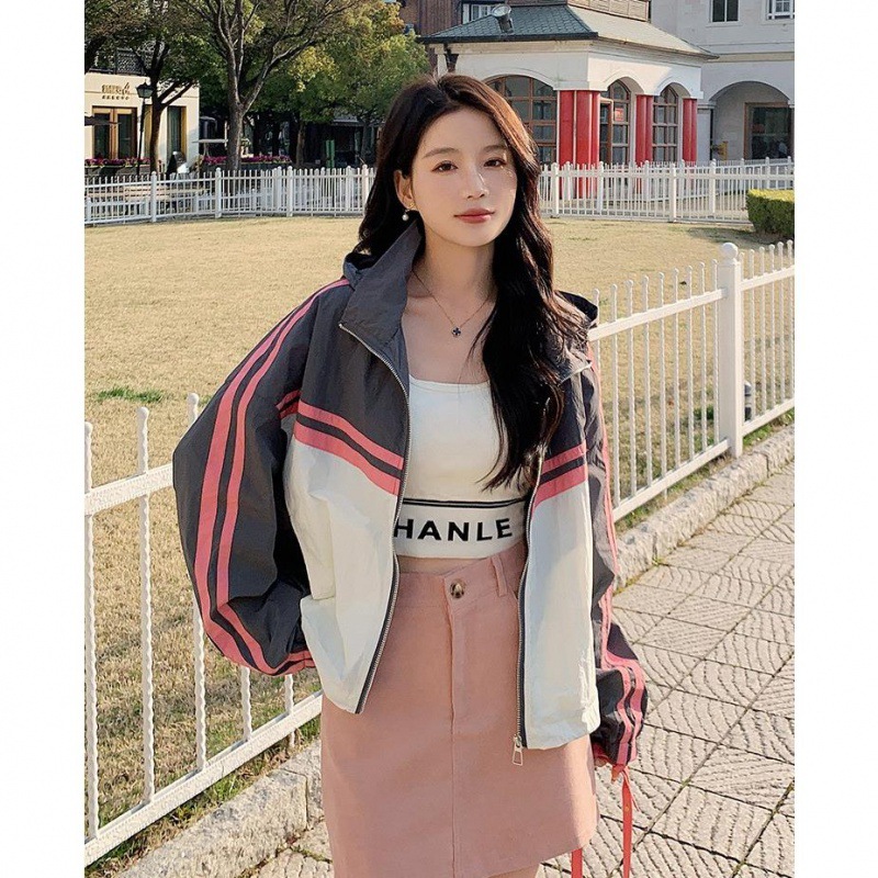 | nameOriginal | Contrast color small casual hooded short coat women's design sense niche 2024 spring new college style baseball uniform |
