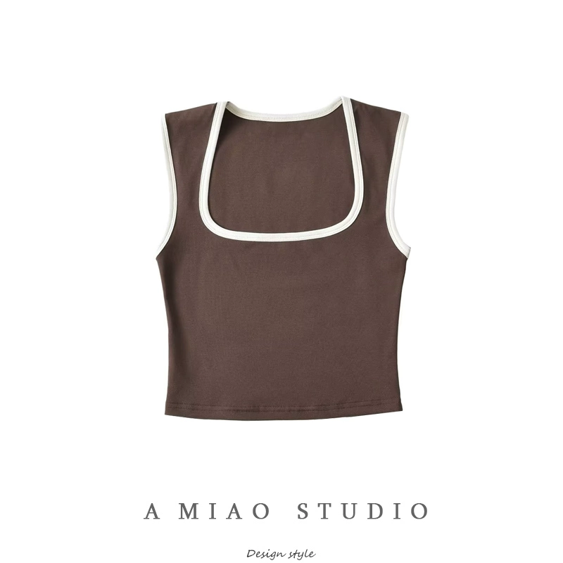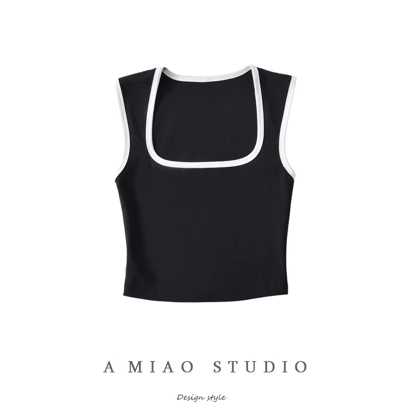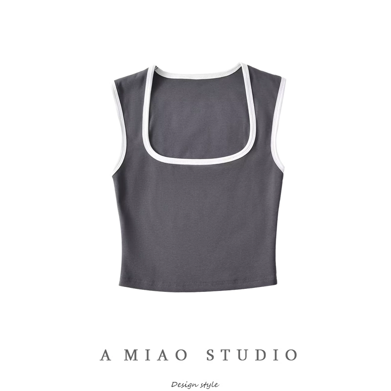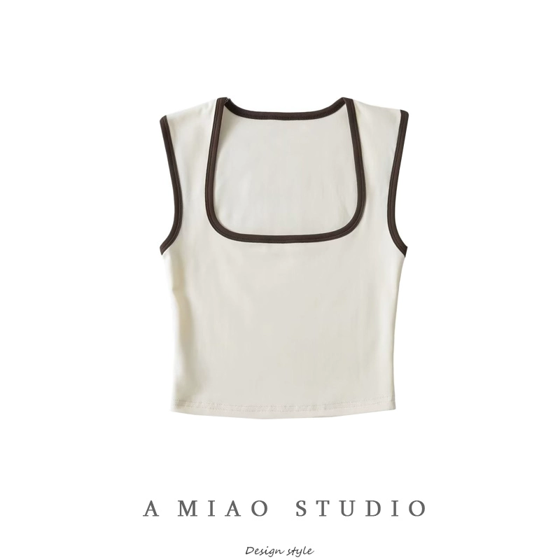 | nameOriginal | Contrast color square neck low-cut pure desire slim-fitting midriff-baring vest |
